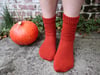 Nothing screams Halloween like a Jack-o'-lantern. These socks feature a textured Jack-o'-lantern pattern on the front of the legs. The texture is all made out of knit and purl stitches, so it's very easy to follow and quick to knit. These socks are designed to look like regular day-to-day socks with a touch of Halloween. Seeing as the pattern is very easy with no fancy or difficult stitches, these are the perfect project for a Halloween horror movie night.