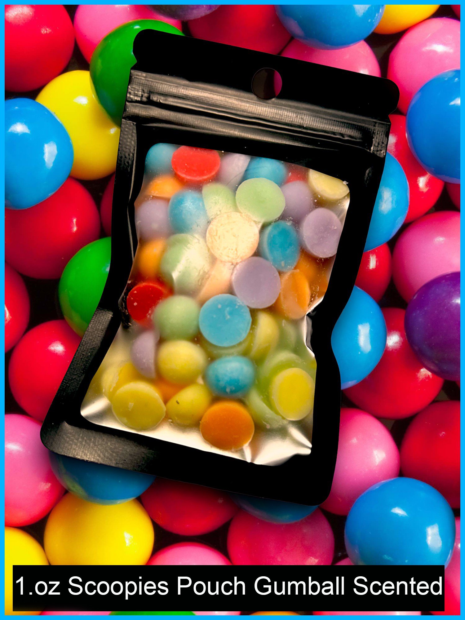 This listing is for 6 multi colored bubble gum wax melts scoopies. comes in 3 pouch sizes (1.oz) (3.oz) (1/2 Pound) pouches In smell proof resealable pouch.