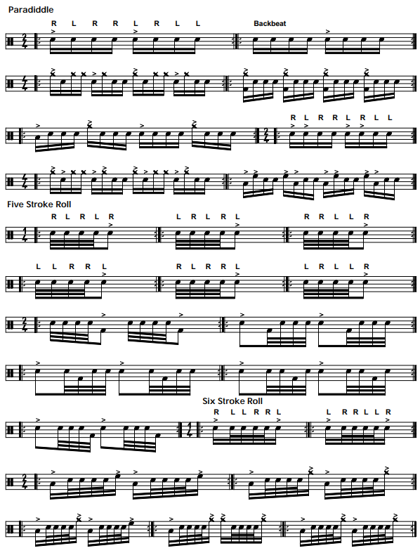 Diddles, 5 - 6 Stroke Roll, Triplets, Sixteenths, Quintuplets, Sextuplets, Octuplets
