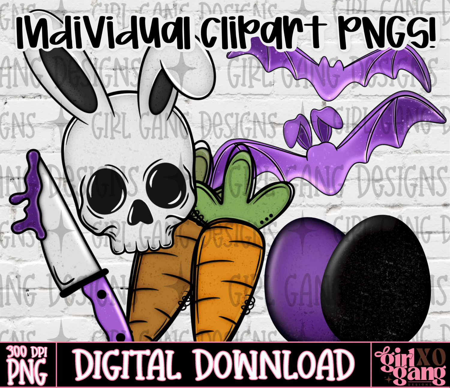 Spooky Easter purple clipart png bundle