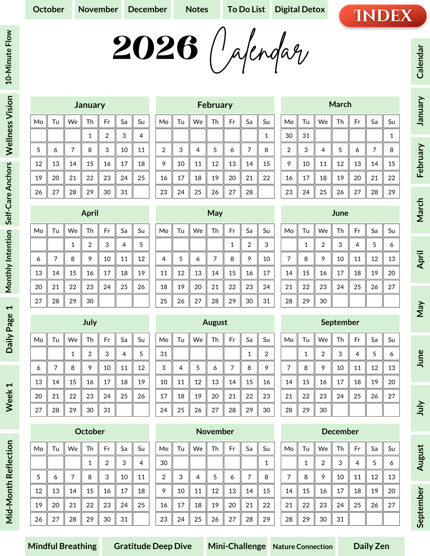 - Full 2026 calendar overview
