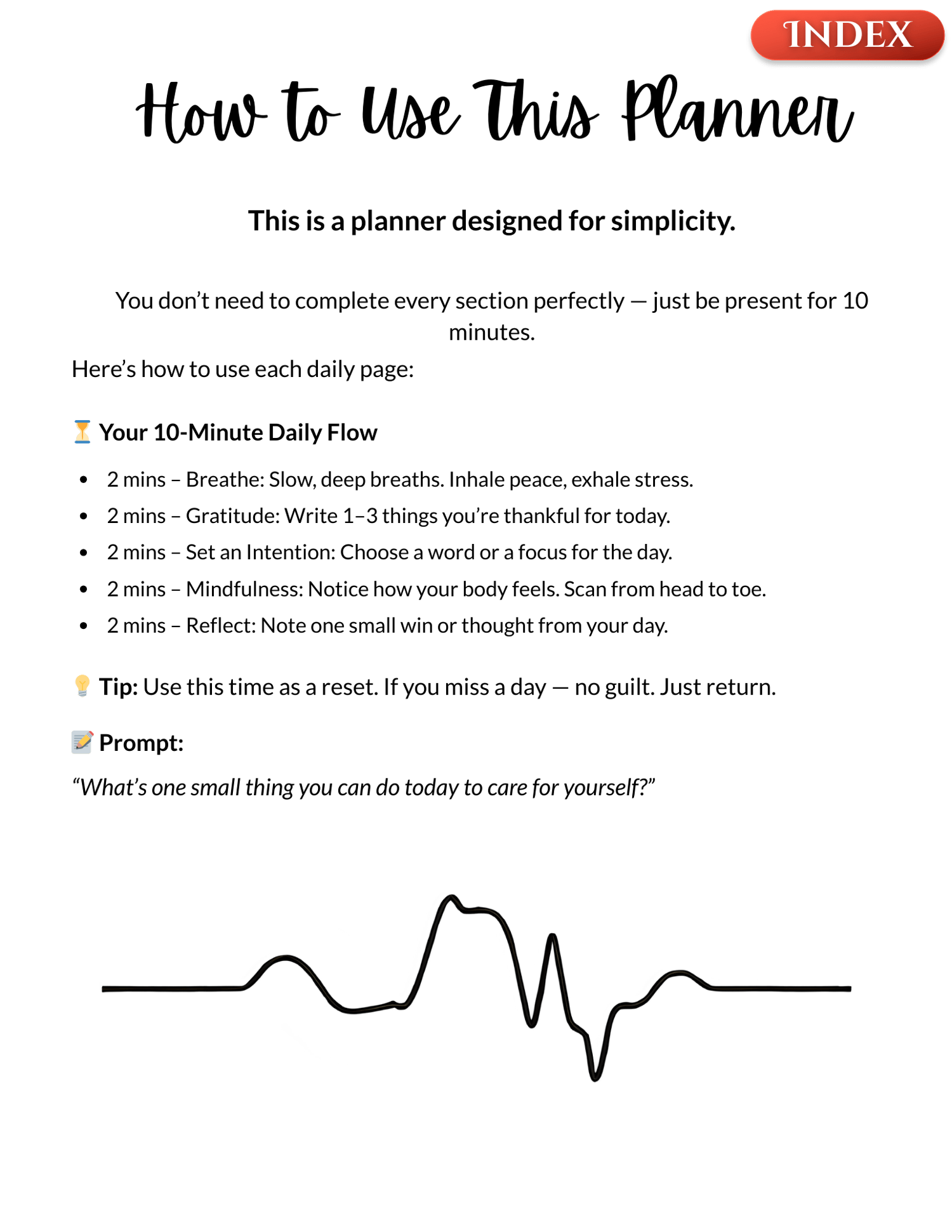 This beautifully designed 57-page planner helps you reconnect with yourself through simple daily prompts that take just 10 minutes, perfect for busy lives, anxious minds, and anyone seeking more balance and presence.