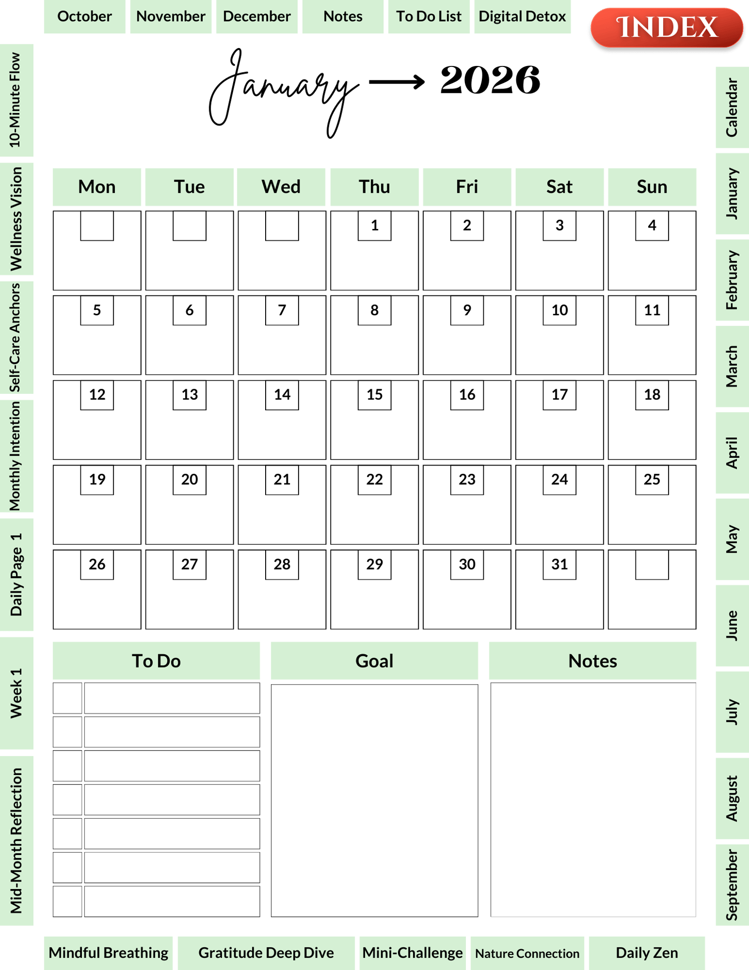 - Monthly intention-setting pages