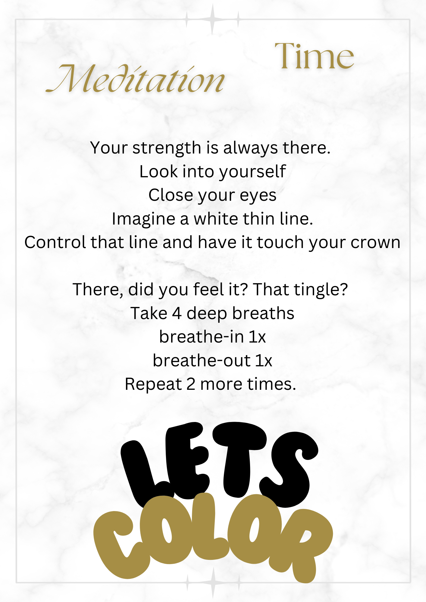 Just as it says, it's coloring for self-love. Meditate and color an image. Take the time to think and talk amongst yourself with your higher self.