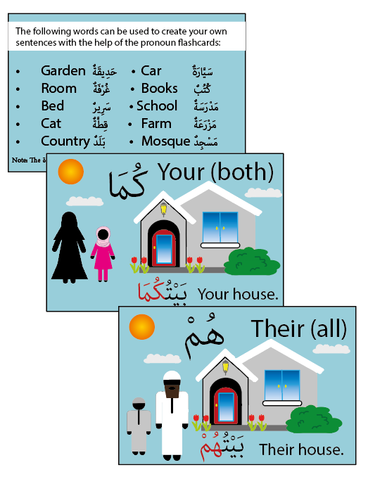 These beautifully illustrated cards were designed to engage your child and ease memoristion of pronouns which are frequently used in both the Noble Qur’aan and in general speech. The table included will aid your child's understanding of each pronoun inshaa'Allaah. Clear examples are given on each card. These cards can be displayed on a board or fridge for reviewing and can be used by children and adults alike. A list of 10 words is also included in the set so your child can practise writing sentences using the pronouns.