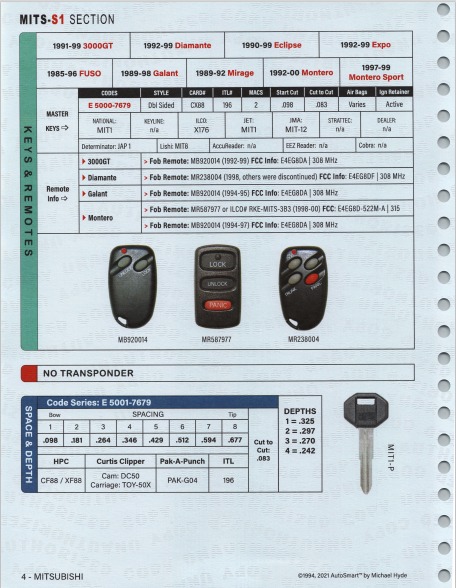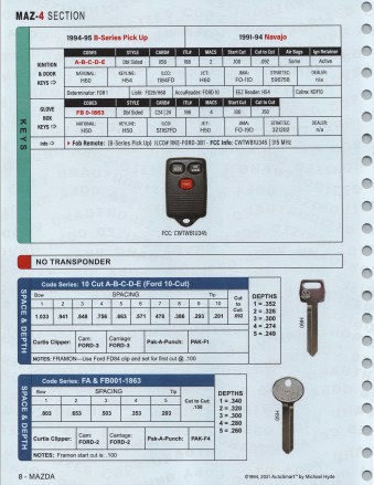 - The latest for Mazda & for Toyota info on key blanks, tumbler placements and part numbers.