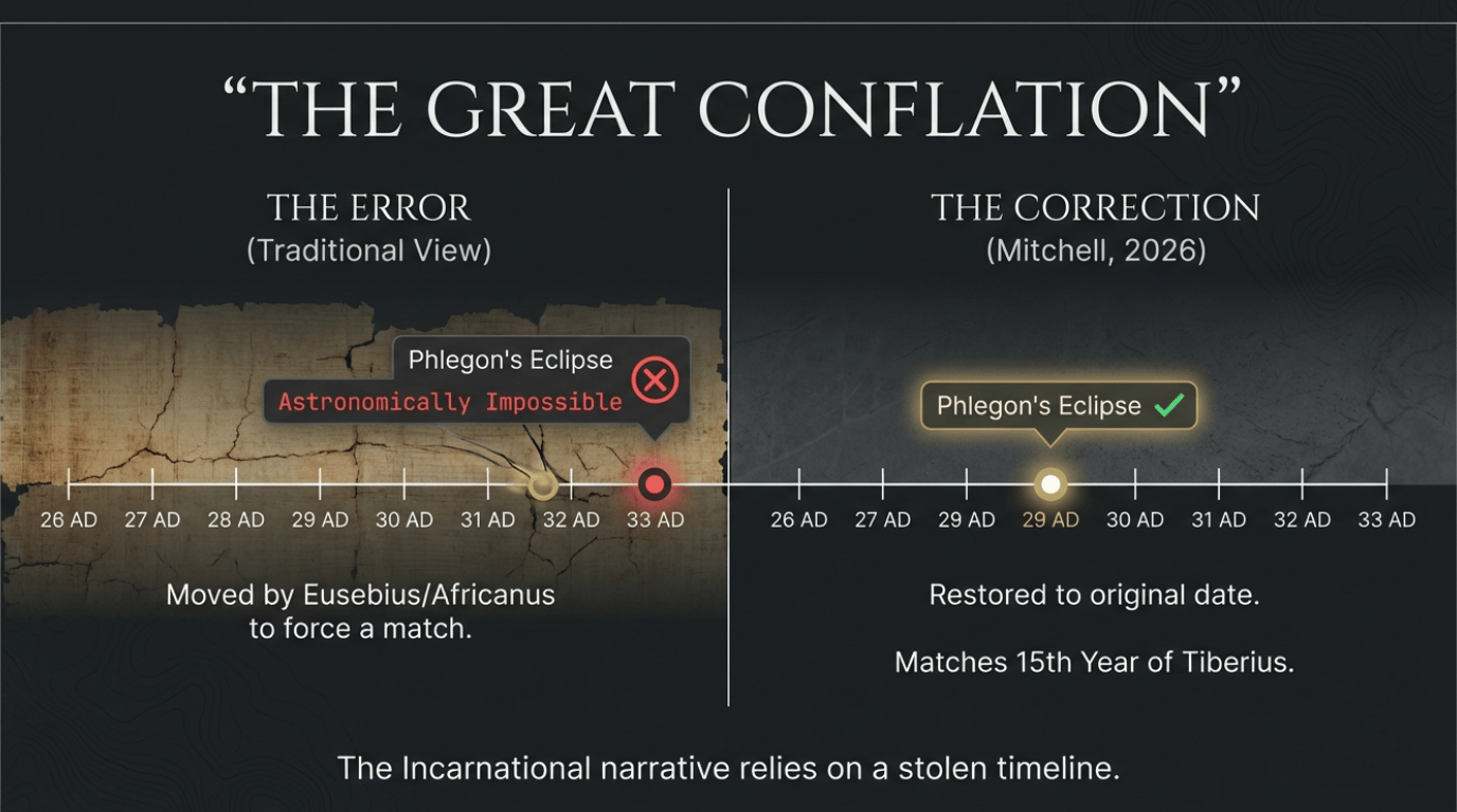 This paper establishes the conjunction of three independent natural phenomena - the total solar eclipse of 24 November 29 AD, the major earthquake documented in Bithynia/Nicaea, and a contemporaneous seismic event detected in Dead Sea sediment cores - as the historically and geophysically verifiable foundation of the primitive Christian Evangelion. This unified event, the "Eclipse-Seismic Theophany," aligns precisely with the gospel's record of Jesus's descent into Capernaum in the fifteenth year of Tiberius Caesar. Building upon the forensic model of the Theophanic Replacement Protocol (TRP) (Mitchell, 2025), this study performs a critical re-analysis of the 2nd-century historian Phlegon of Tralles's account and integrates recent geological data from the Dead Sea Transform (Williams et al., 2012).