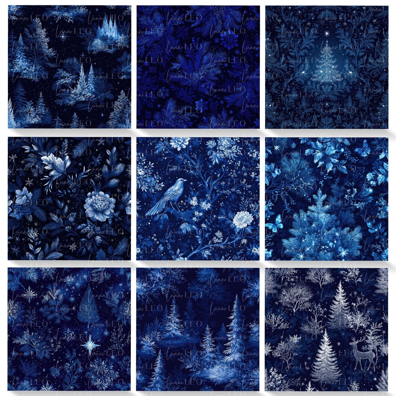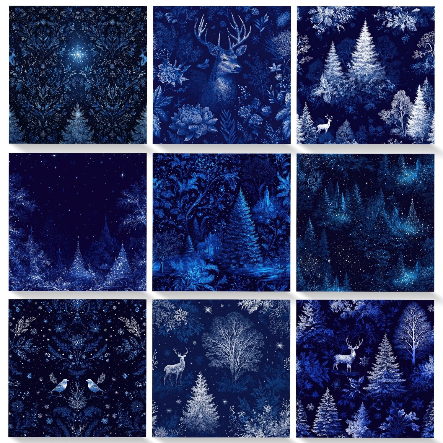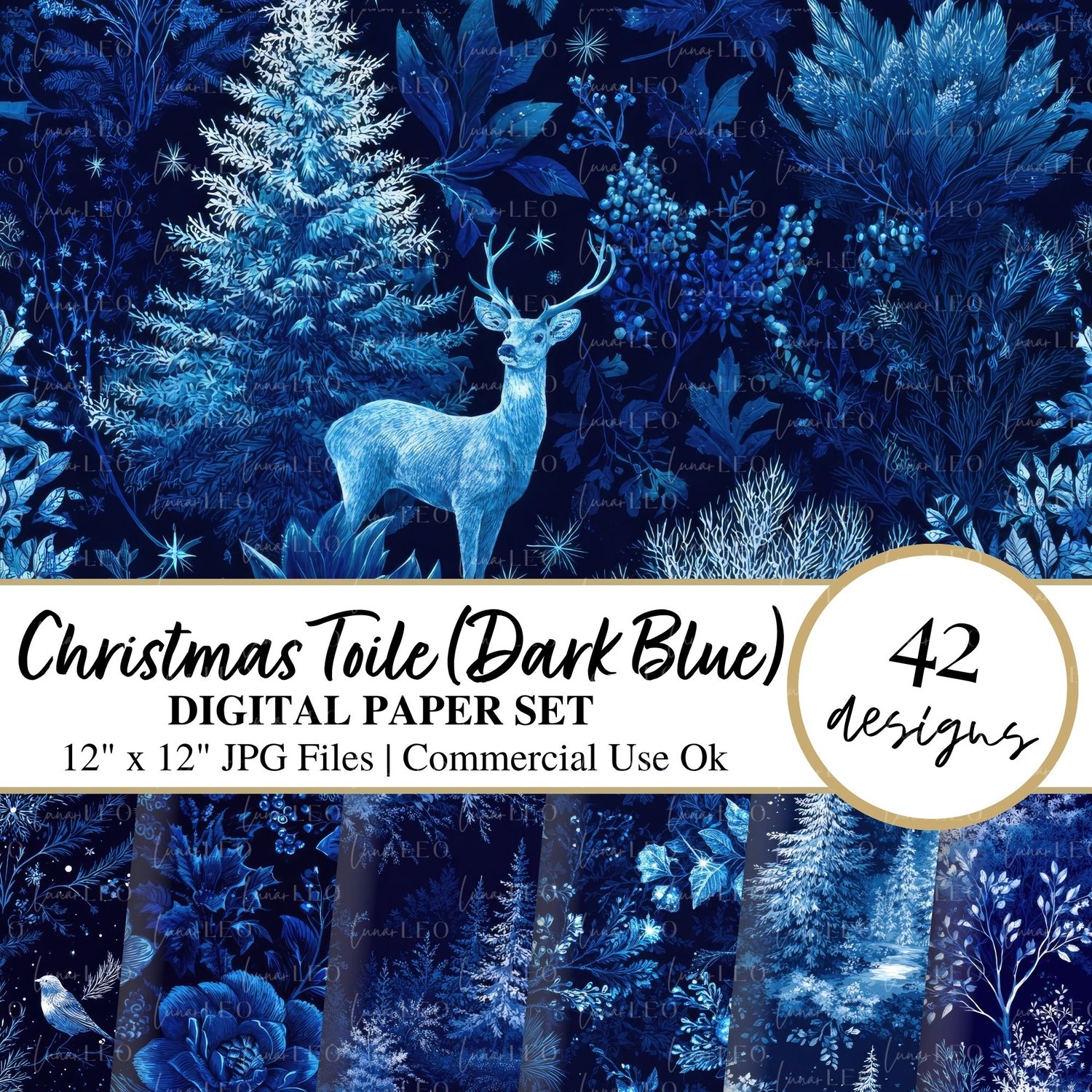 Bring a timeless, elegant feel to your holiday projects with this Dark Blue Christmas Toile Digital Paper Set. Each design features intricate winter artwork with reindeer, pine trees, florals, and forest scenes in deep navy and cool blue tones. The detailed toile style adds a refined, vintage touch that’s perfect for both traditional and modern holiday aesthetics.