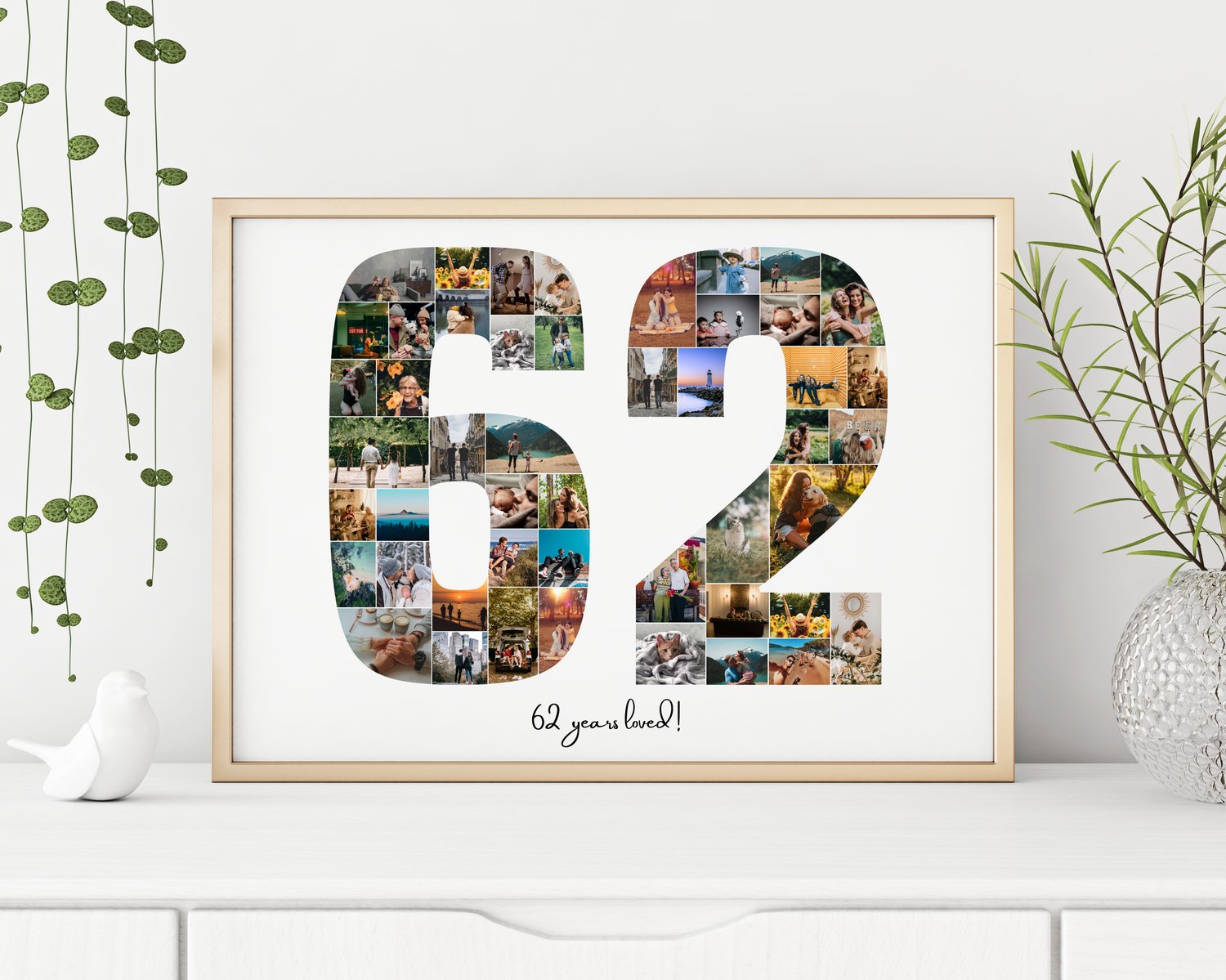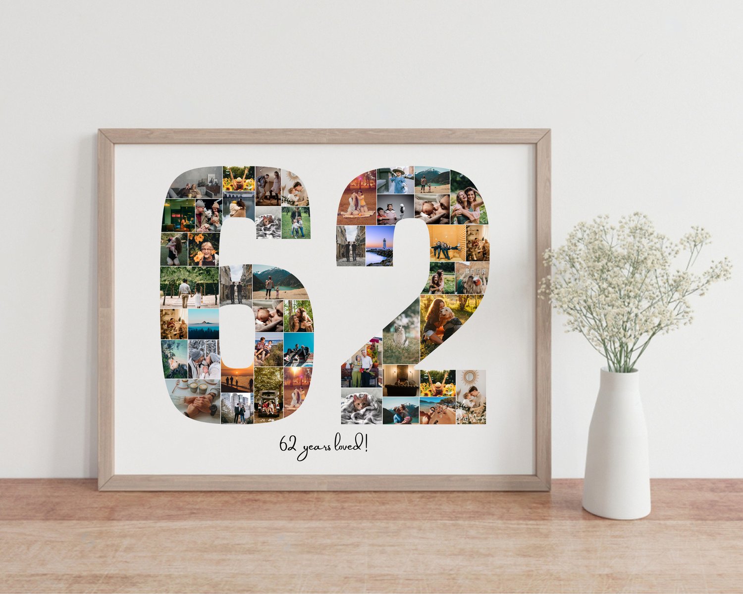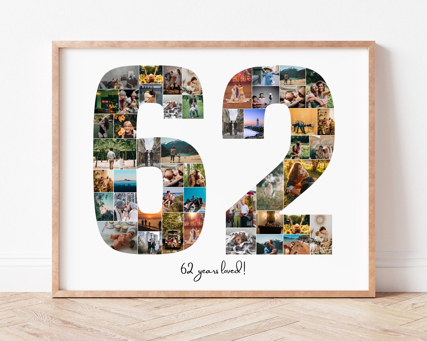 EDITABLE 48 photos, Custom 62nd anniversary Collage, 62nd birthday collage print, Photo Collage Gift, Number Collage, gift for him, 62 years