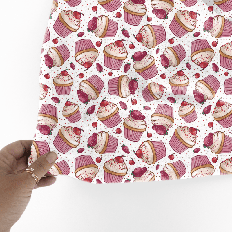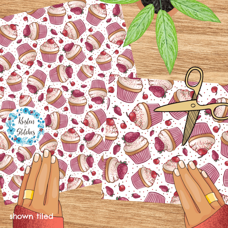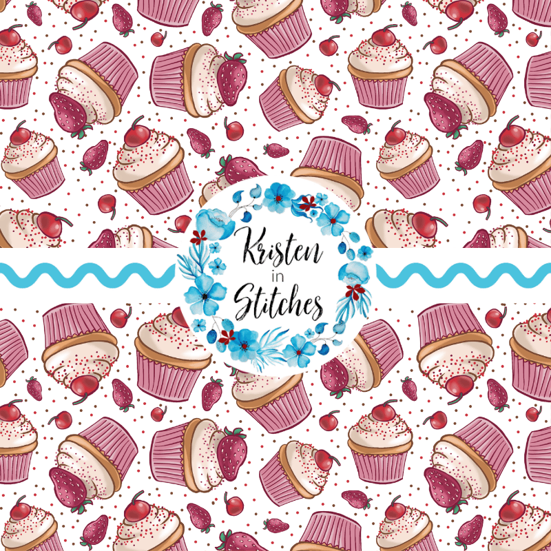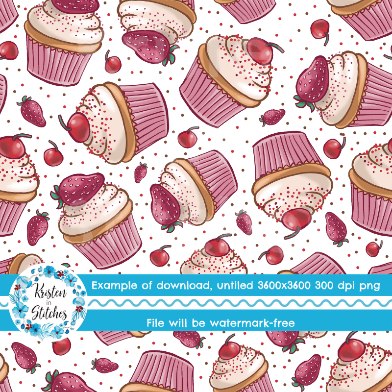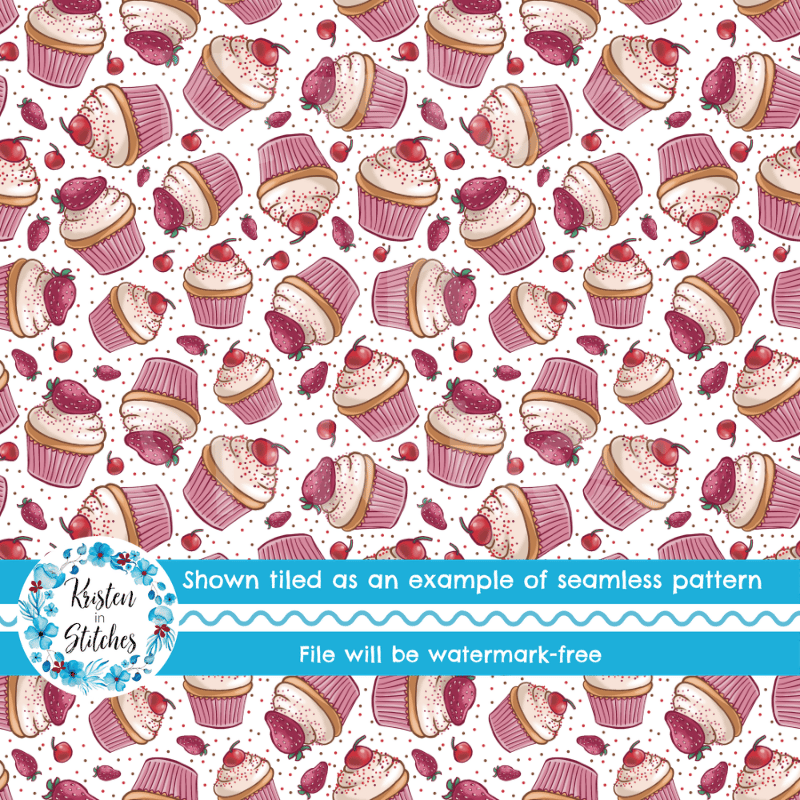 Strawberry Frosted Cupcakes Seamless Pattern, Red Strawberries