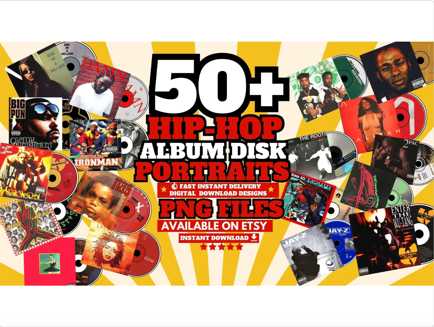 50+ Hip Hop Rap Star Album Disk PNG Bundle For Shirts | Digital download | Sublimation| streetwear design, hip hop rap, rock bands t-shirts