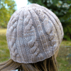 This is a quick and easy project that you will want to knit for all your friends! This snug fitting beanie is knit in a soft and warm merino wool. The hat is worked in the round from the bottom up. The cables travel up the hat and hide the decreases used to shape the crown. Four sizes are presented, each with a different number of cables and/or pattern repeats. For a slouchy version of this pattern, see the Bestie Slouchy.