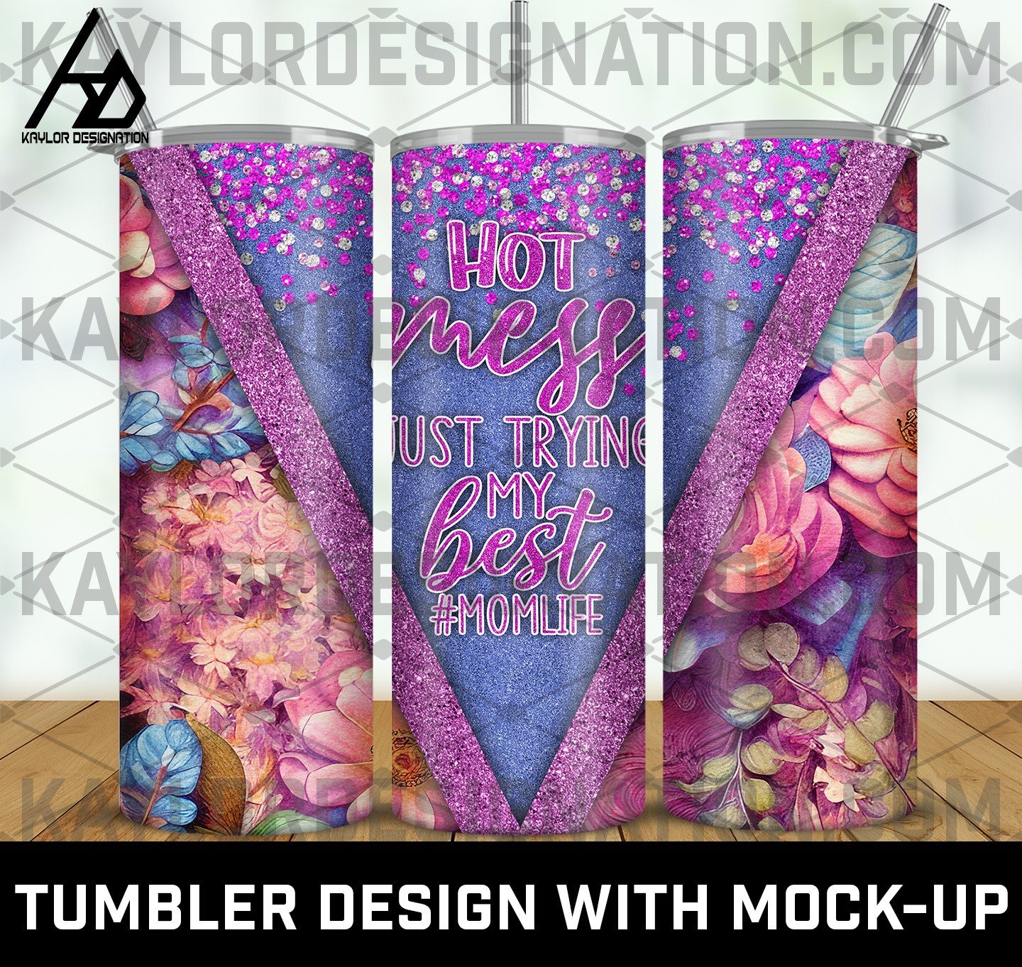 Hot Mess Trying My Best 20oz Skinny Tumbler Template With Mock-Up