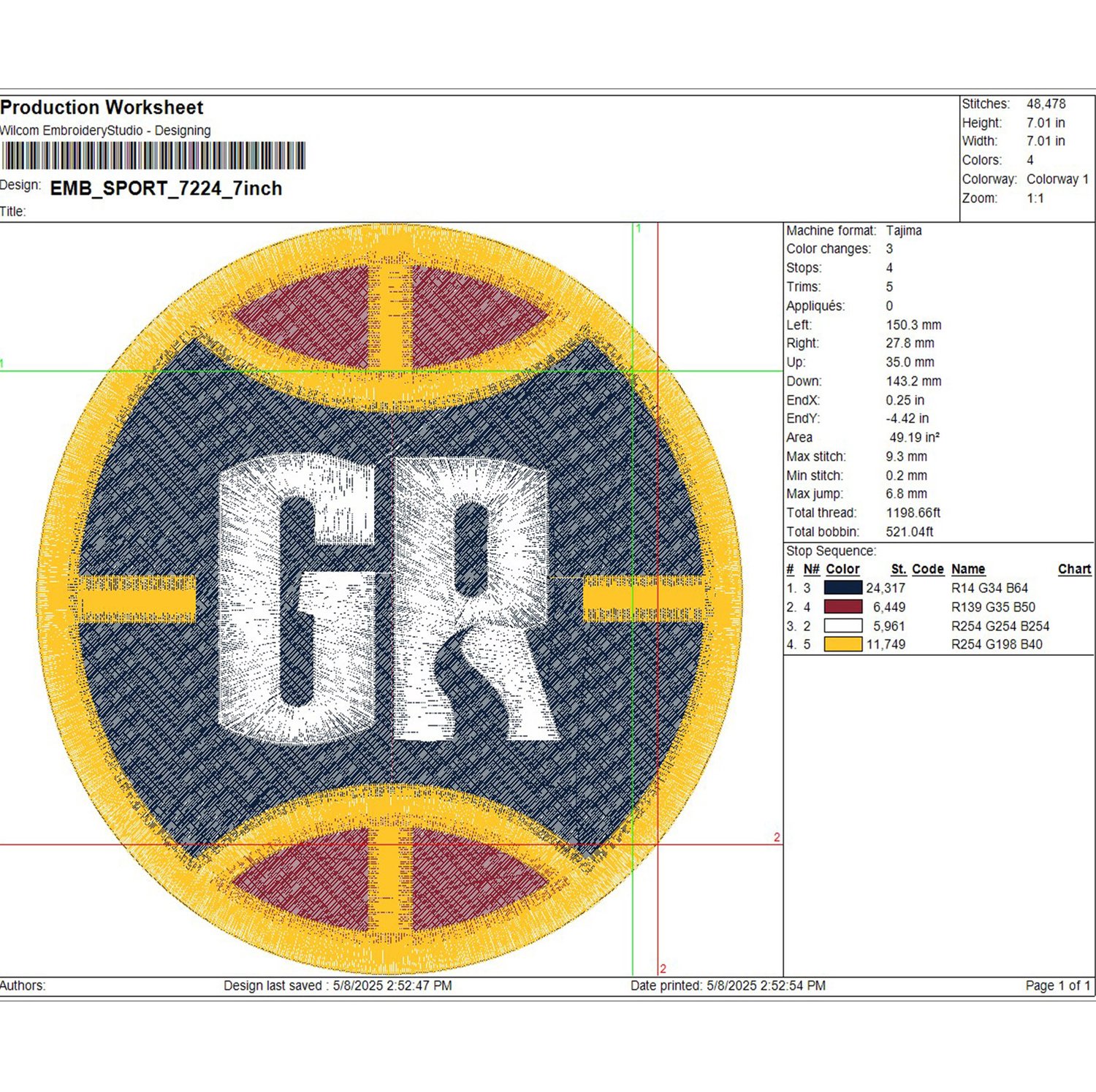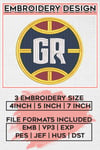 GR Gold NBA G League Team Logo Embroidery Designs, NBA G League Grand Rapids Gold Logo Machine Embroidery Files, NBA G League Basketball Team Logo embroidery designs, NBA G League Rapids Gold, Digital Download