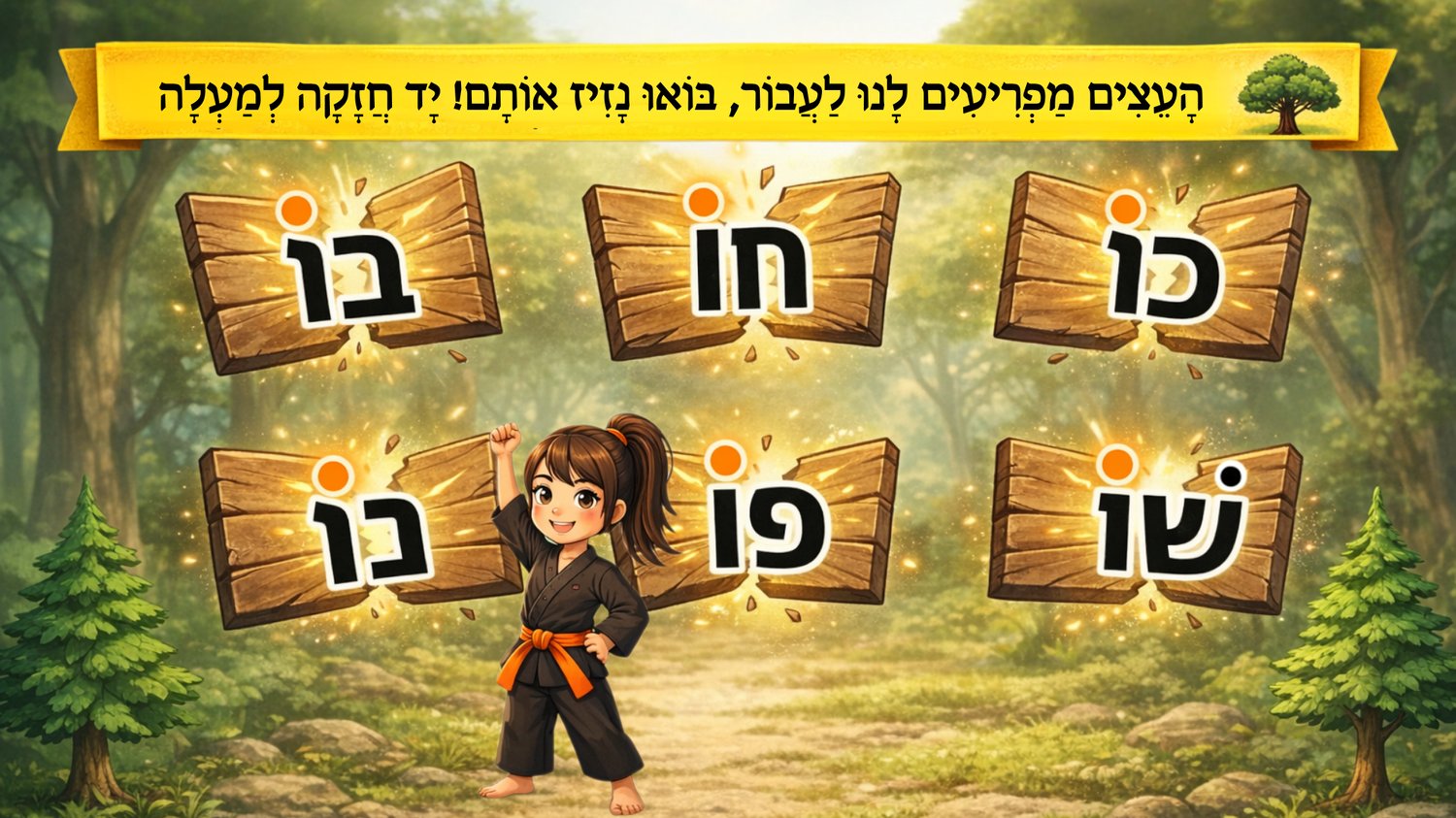 לאחר שהילדים רכשו בסיס בחגורה הלבנה (פתח, קמץ ושווא), והעמיקו בחגורה הצהובה עם תנועת החיריק — הם ממשיכים להתקדם בביטחון לשלב הבא במסע הקריאה.