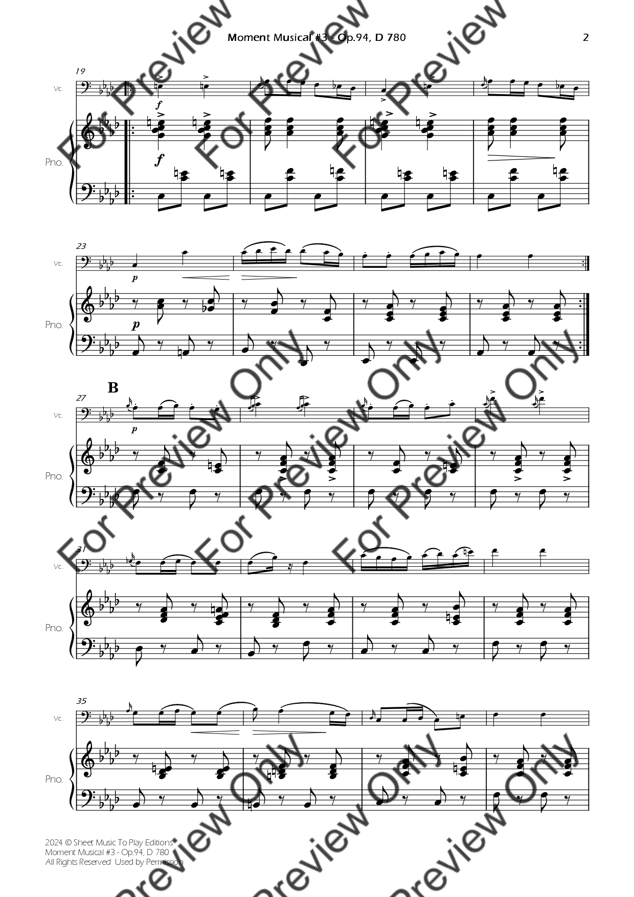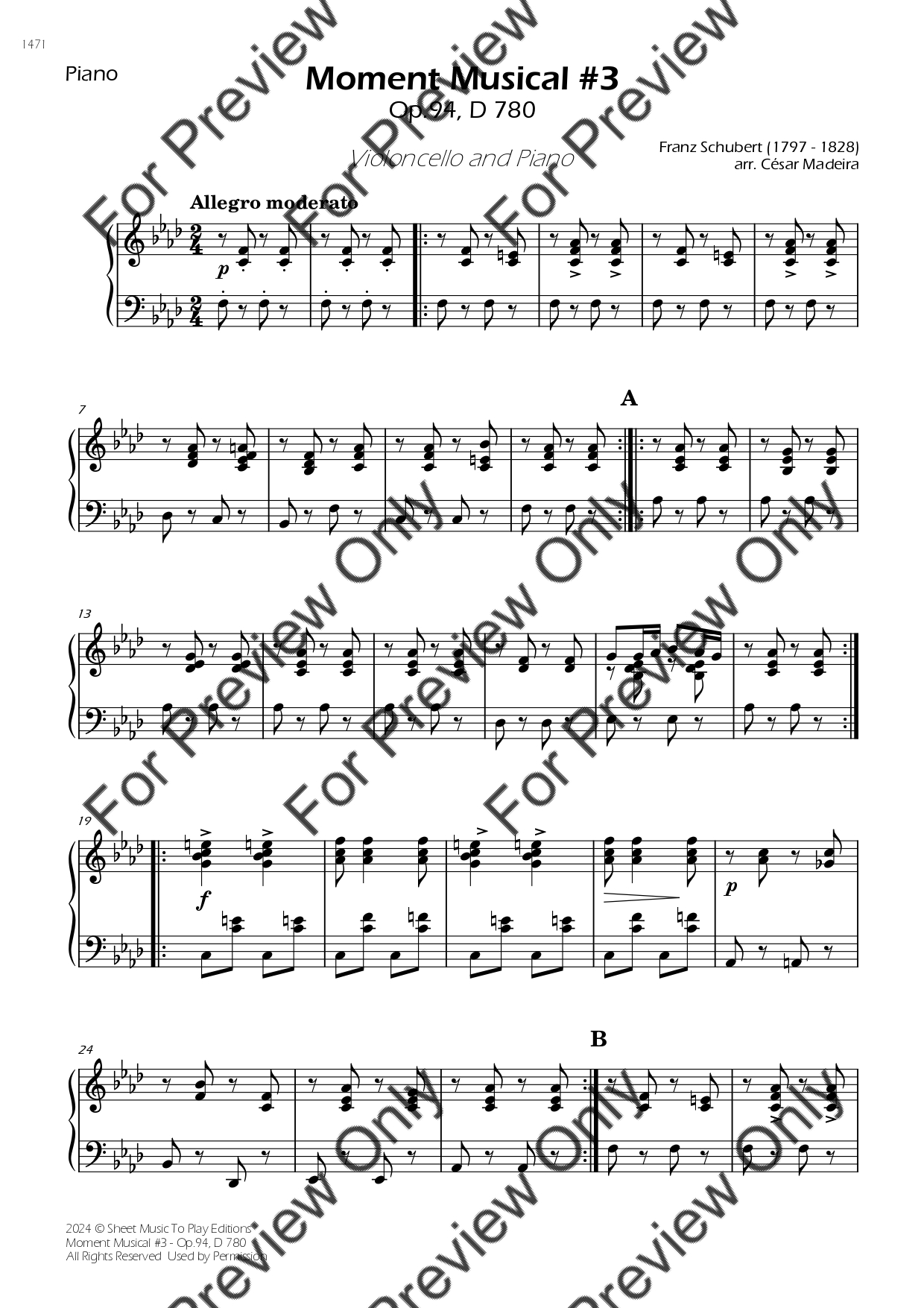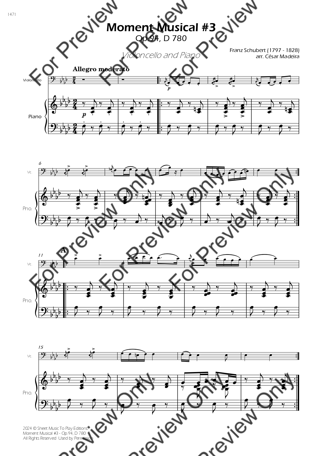 Moment Musical No.3, Op.94 - D.780 by Franz Schubert. Arrangement for Violoncello and Piano. With Full Score and Individual Parts. Have fun!