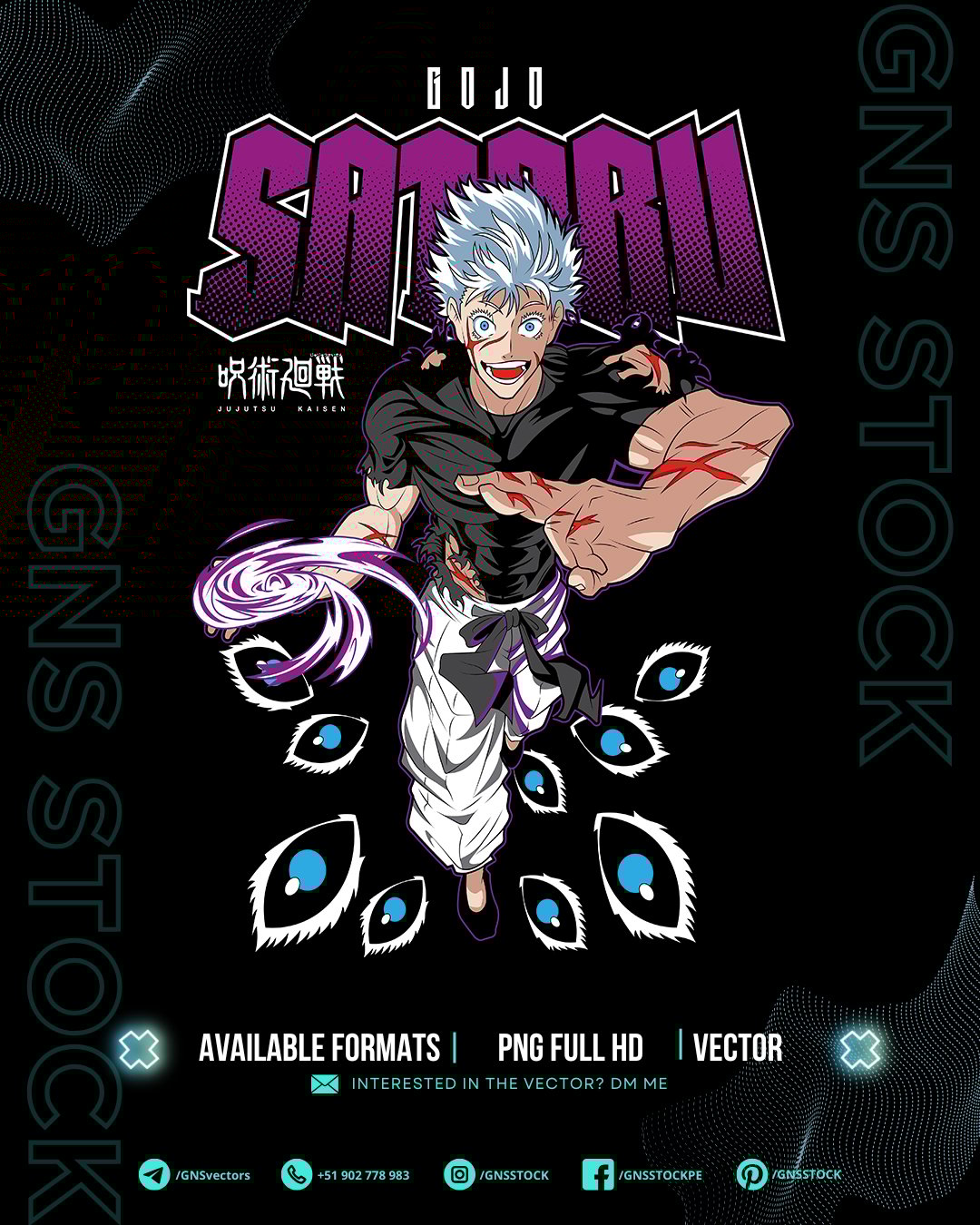 Anime Vector – Satoru Gojo | Jujutsu Kaisen | Design for DTF, Sublimation, T-Shirts | Files: CDR, PDF, PNG, SVG