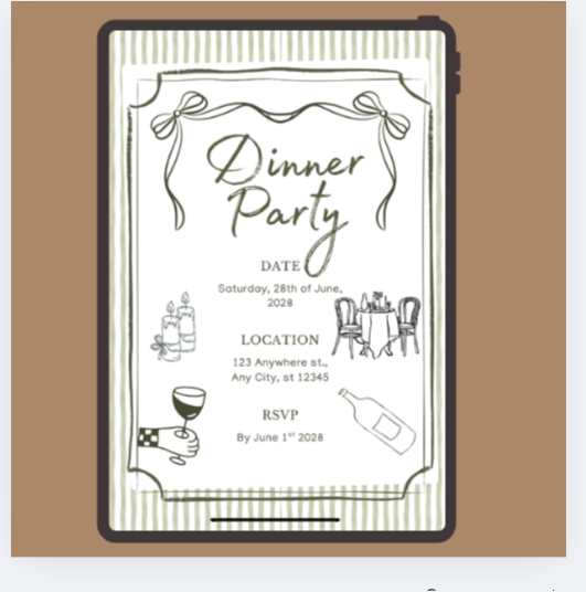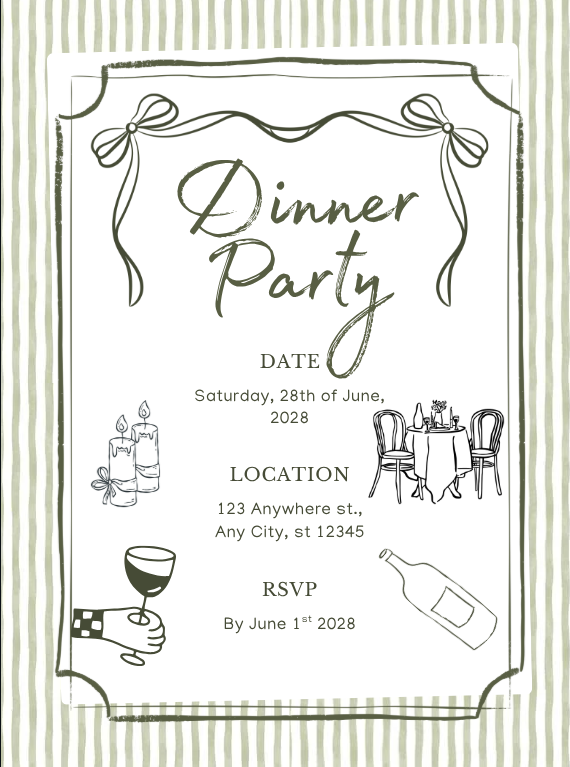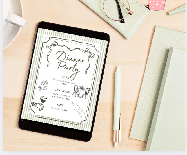 Dinner Party Invitation Editable, Digital Invite, Custom Birthday Card, Party Invitation, Instant Download