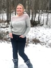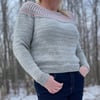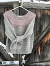 Winterlicious is a semi-cropped top-down sweater with a very flattering yoke in two colour brioche and contrast eyelet garter striping.