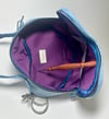 The interior is a rich purple-colored water-resistant canvas with a mesh pocket.