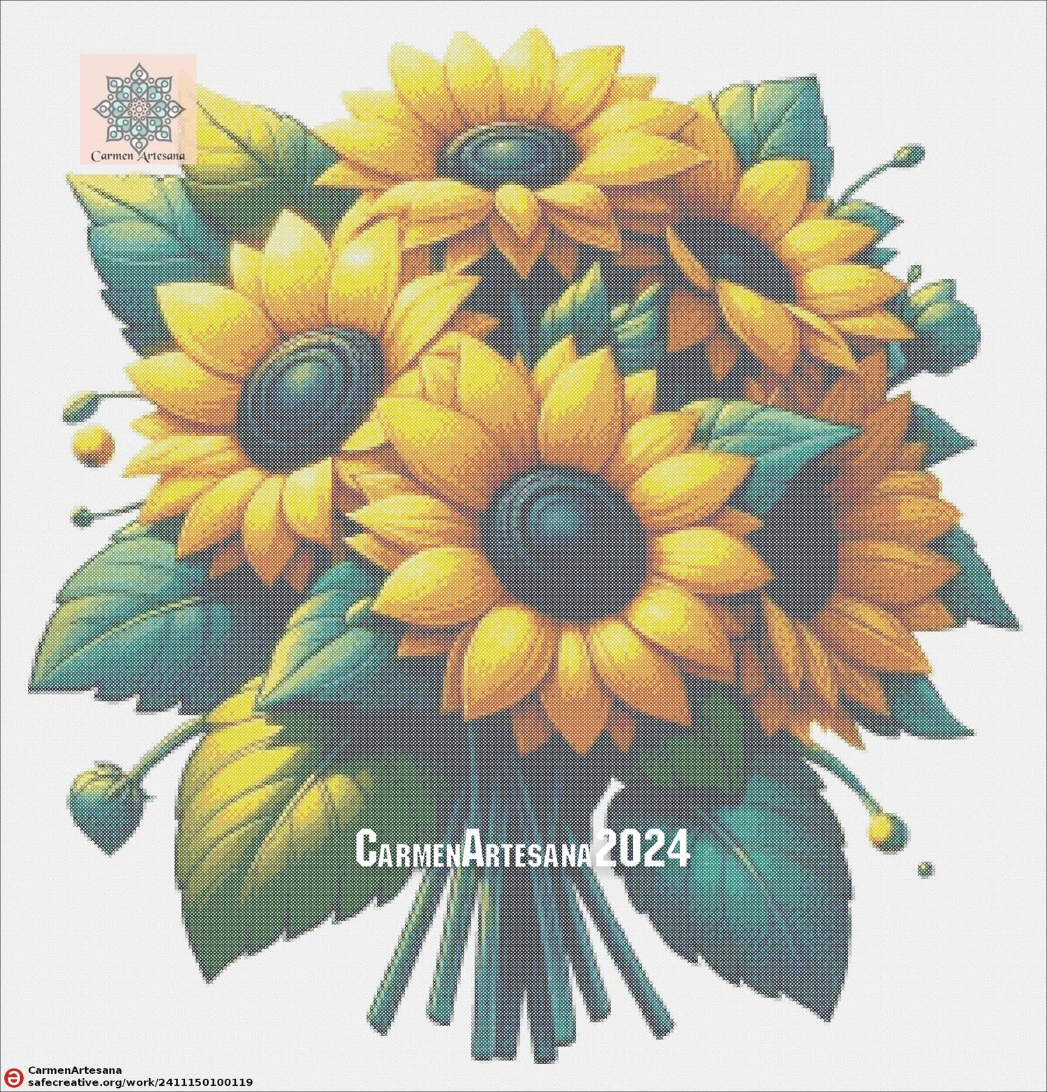 PDF cross stitch pattern, Bouquet of Sunflowers, instant download, English/Español