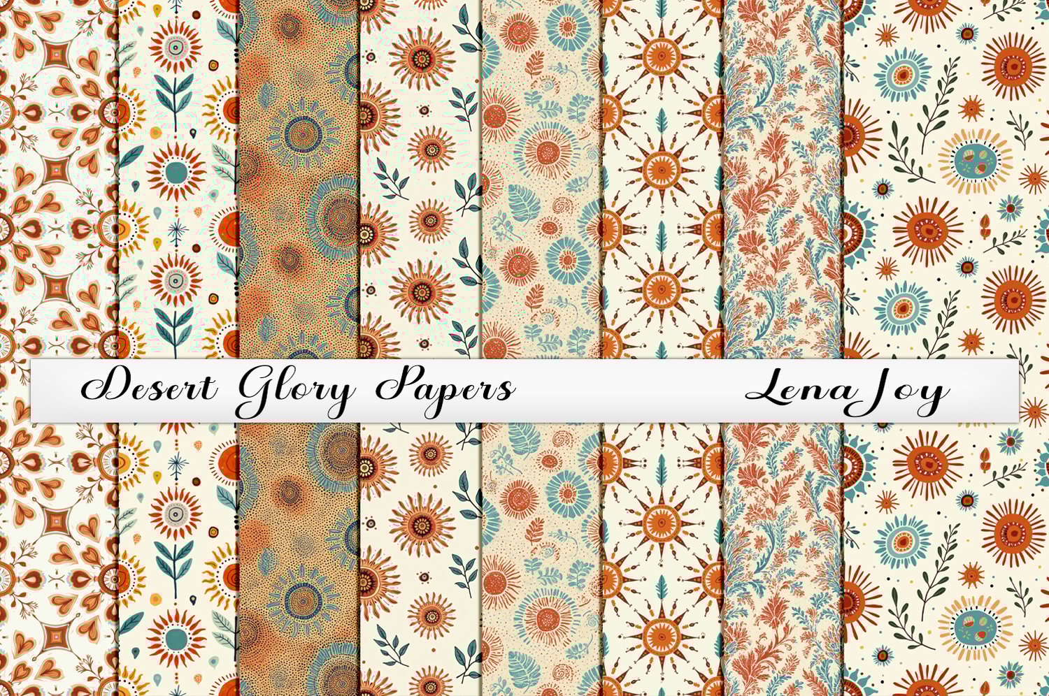 Enhance your designs with these lovely papers showing off the glory of the desert with bright sun-like flowers. Glory Desert Papers is showing off the beauty of the desert in a light floral pattern in tones of brown, turquoise, deep orange, and cream. Every paper in this collection is created with crafters in mind. The papers are easy to print, simple to layer, and ready to drop directly into your next crafting, scrapbooking, or digital design project. Whether you’re working on personal pieces or commercial creations, these papers provide an instant creative upgrade.