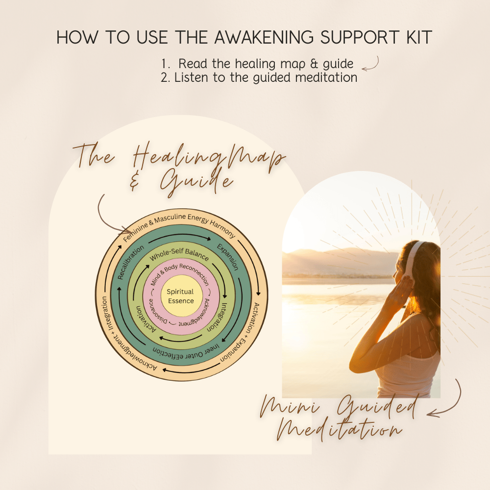 A grounding guided meditation and a printable healing map to support your spiritual awakening, ease energetic overwhelm, and help you understand awakening symptoms.