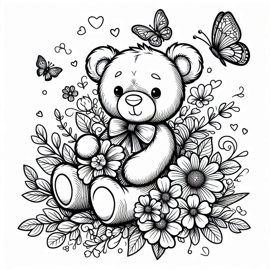 Teddy Bears and Parrots Coloring Book