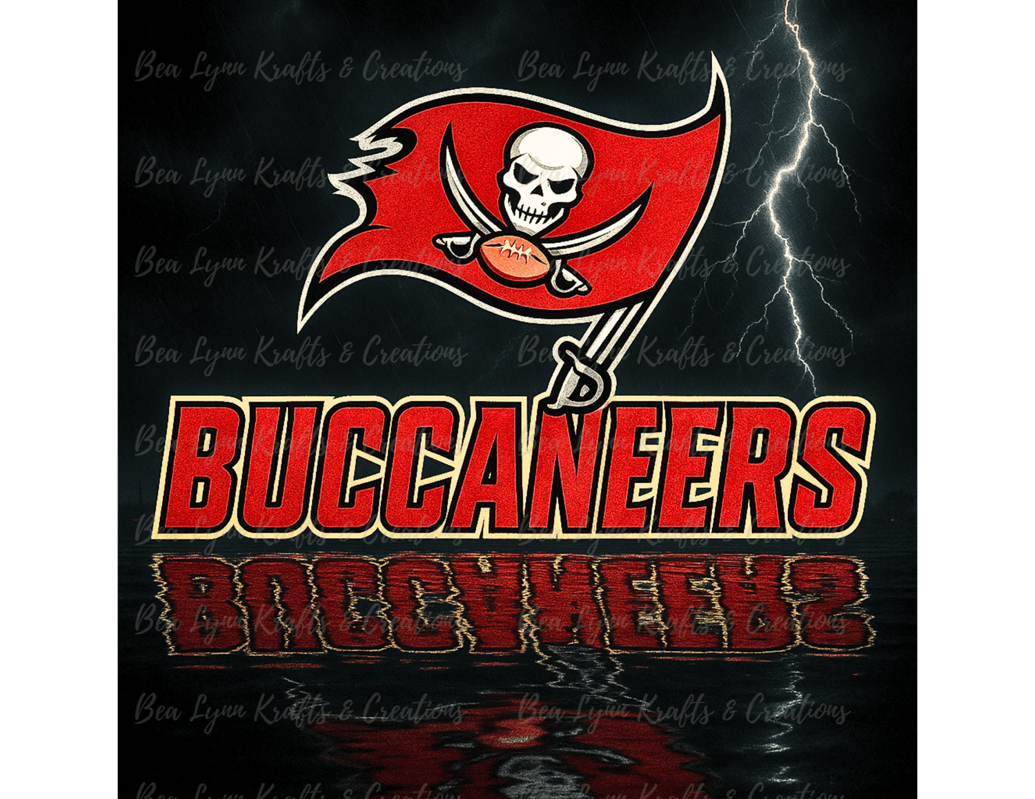 Tampa Bay Buccaneers Storm PNG – Skull Flag Logo with Floating Text & Lightning Reflection – Instant Digital Download