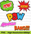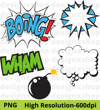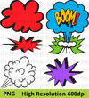 30 Elements - Comic Book Superhero Collection, hi-res digital CLIP ART (with transparent background).