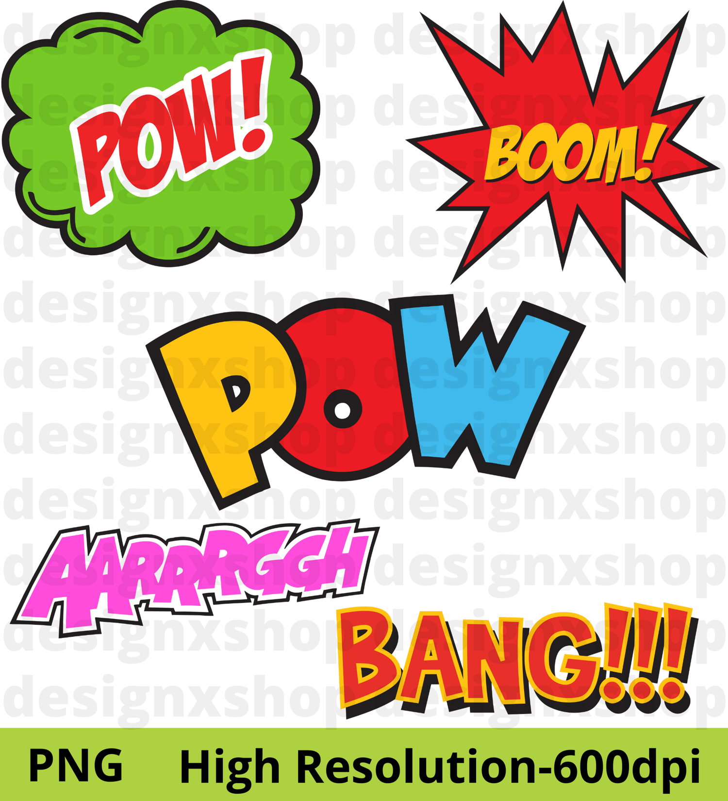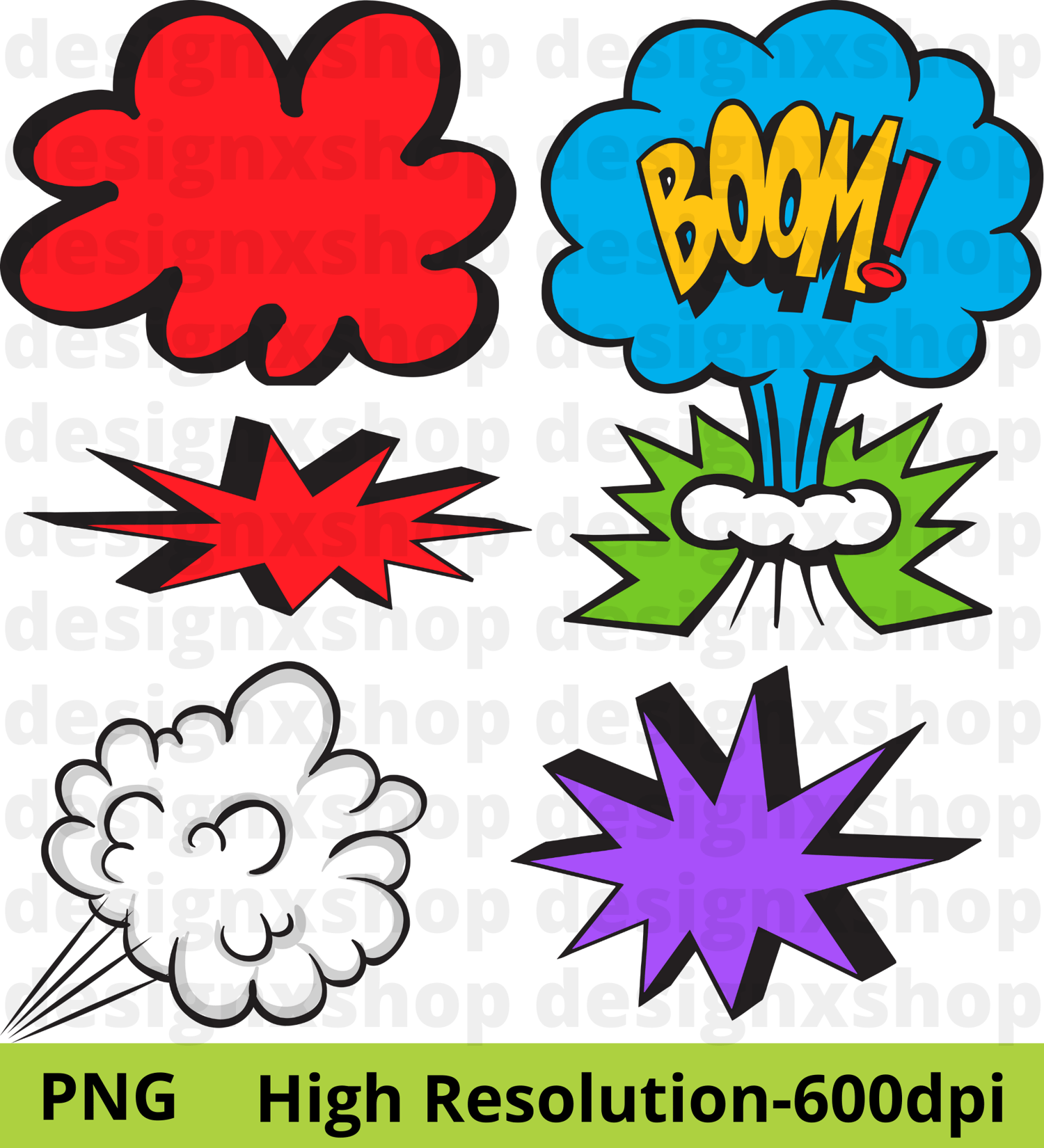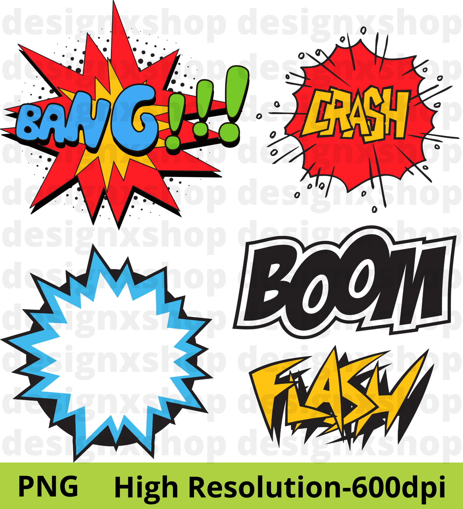 Comic Style Action Bubbles, Comic Book clipart, Superheroes clipart, Pop Art, Text Props, Birthday Bundle, Comic Balloon Bubble Art SVG