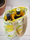 At some point in our lives we need to take a bottle or two of something somewhere. And it is ideal if we have a tote bag that is made for the purpose! This bag is the answer! It takes two standard sized bottles and there is a little ease for larger ones. There is a zipper pocket in the front for a corkscrew and a built in divider in the lining to stop the bottles from chinking together.
