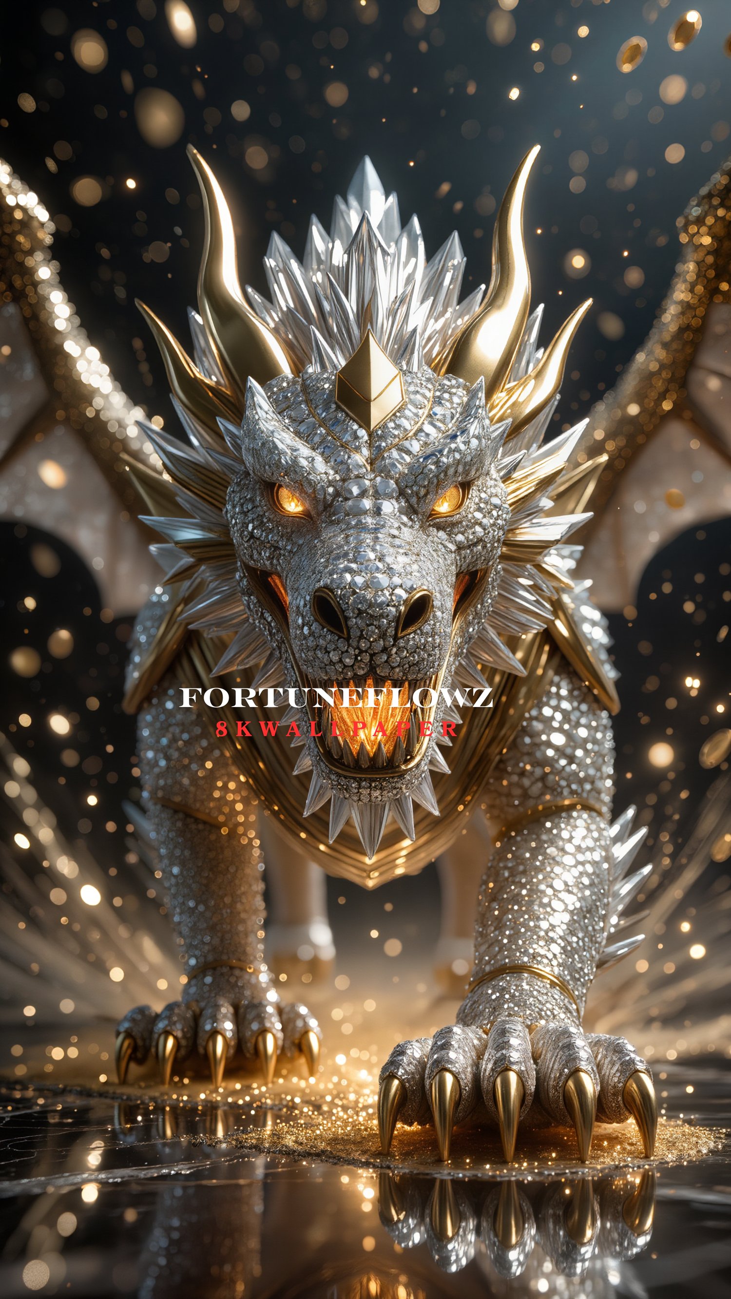 Diamond Dragon Guardian – Power & Prosperity (8K Phone Wallpaper)