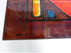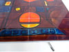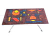Mid-20th-century French coffee table, Original chrome base provenance, unique hand-painted motifs, 1950s–1970s 'mid-century modern' date. Colorful abstract geometric ceramic tiles (18) top in yellows, oranges, reds, and blues, signed by Vallauris atelier "La Grange". Dim: 43x41x91 cm. Good vintage condition. Additional up-to-date photos and details available upon request. Vintage items may show light signs of wear due to their age. Shipping details on request only.