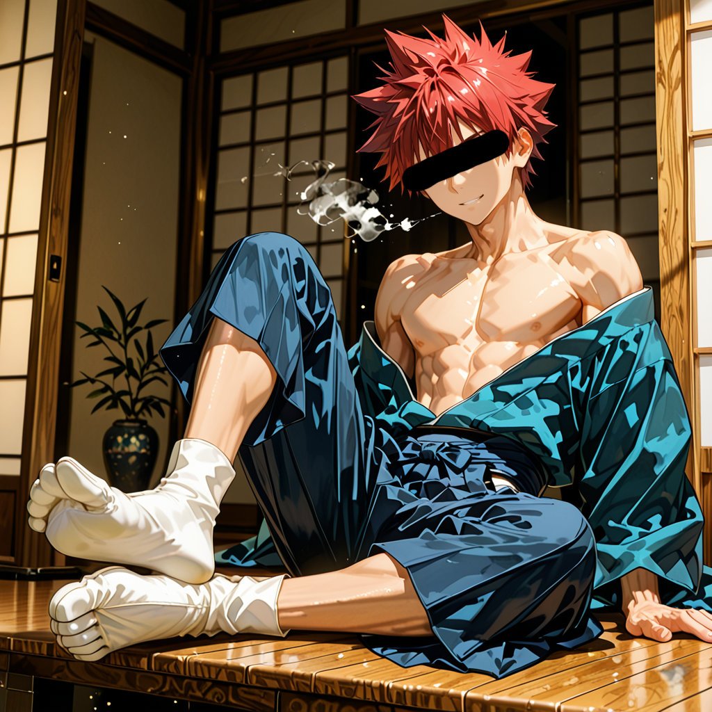 日本の正月をテーマに、着物を着用している男性を、キャラクターごとにお任せ作成しました。男らしいキャラクターの魅力を思い切って表現しました。