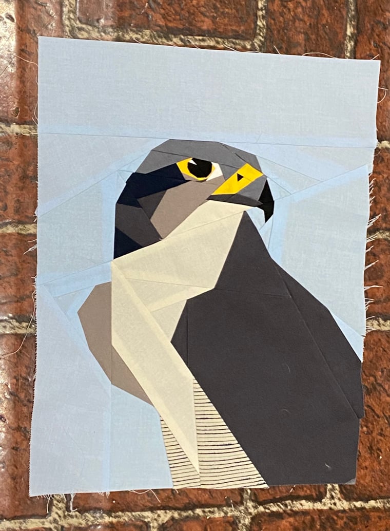 Sew your own Peregrine falcon! This lifelike foundation paper pieced (FPP) block measures approx. 12 x 16" when finished and is suitable for those who have prior experience of FPP. It is all straight line sewing, no Y-seams, so if you have done FPP before you will be able to tackle this! The eye has some tiny piecing but it is entirely doable and looks so effective. The pattern includes a colouring page, detailed keys and the order in which to sew the sections together. On the second page there is also a code for money off the foundation paper I use! No instructions in how to actually paper piece are included, there are a lot of free tutorials available online. Finish the block as a cushion or wall hanging, or keep him to put in the wildlife quilt that the rest of my blocks are leading up to! Please follow me on @griffinandthebearstudio on Instagram for updates and the chance to vote on my upcoming designs, and please tag me in any of your finished blocks, I love to see! #GATBPatterns