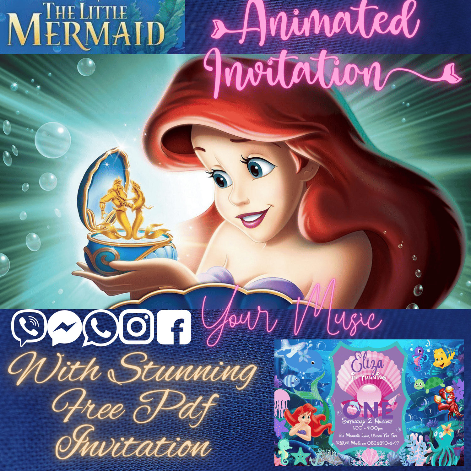 This Little Mermaid Animated Video Birthday Invitation with Music and premium fonts is nothing short of beautiful and nostalgic. Get ready to woo your guests! Click preview to view this invitation.