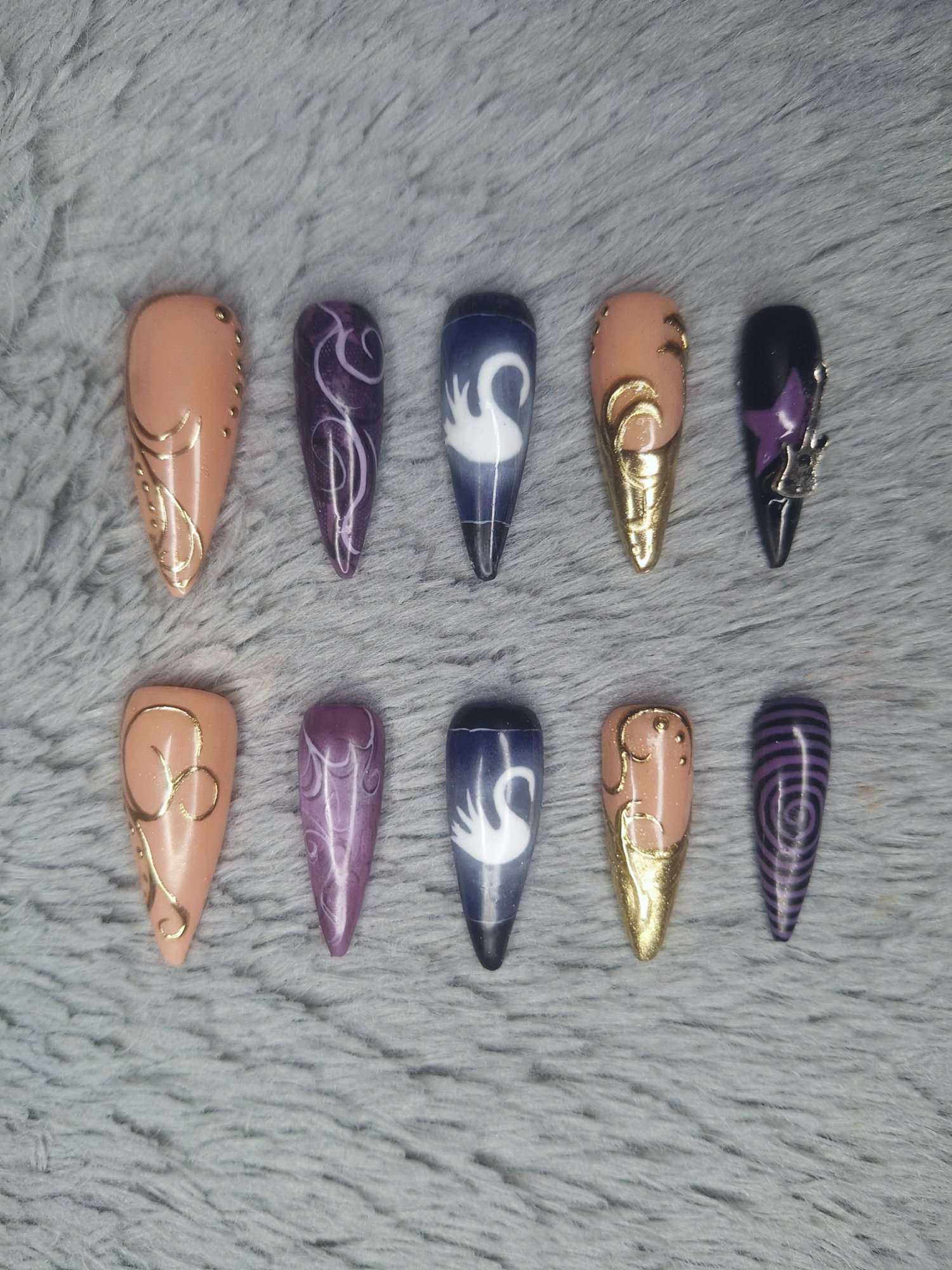 Mazzy star inspired set with isolated chrome French tips, and a vintage whimsogoth aesthetic