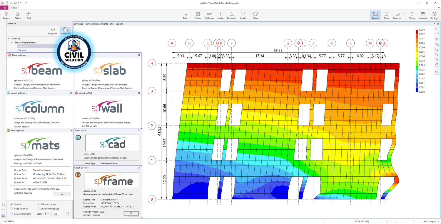 - Includes spColumn, spWall, spSlab, spMats, spBeam & spFrame modules