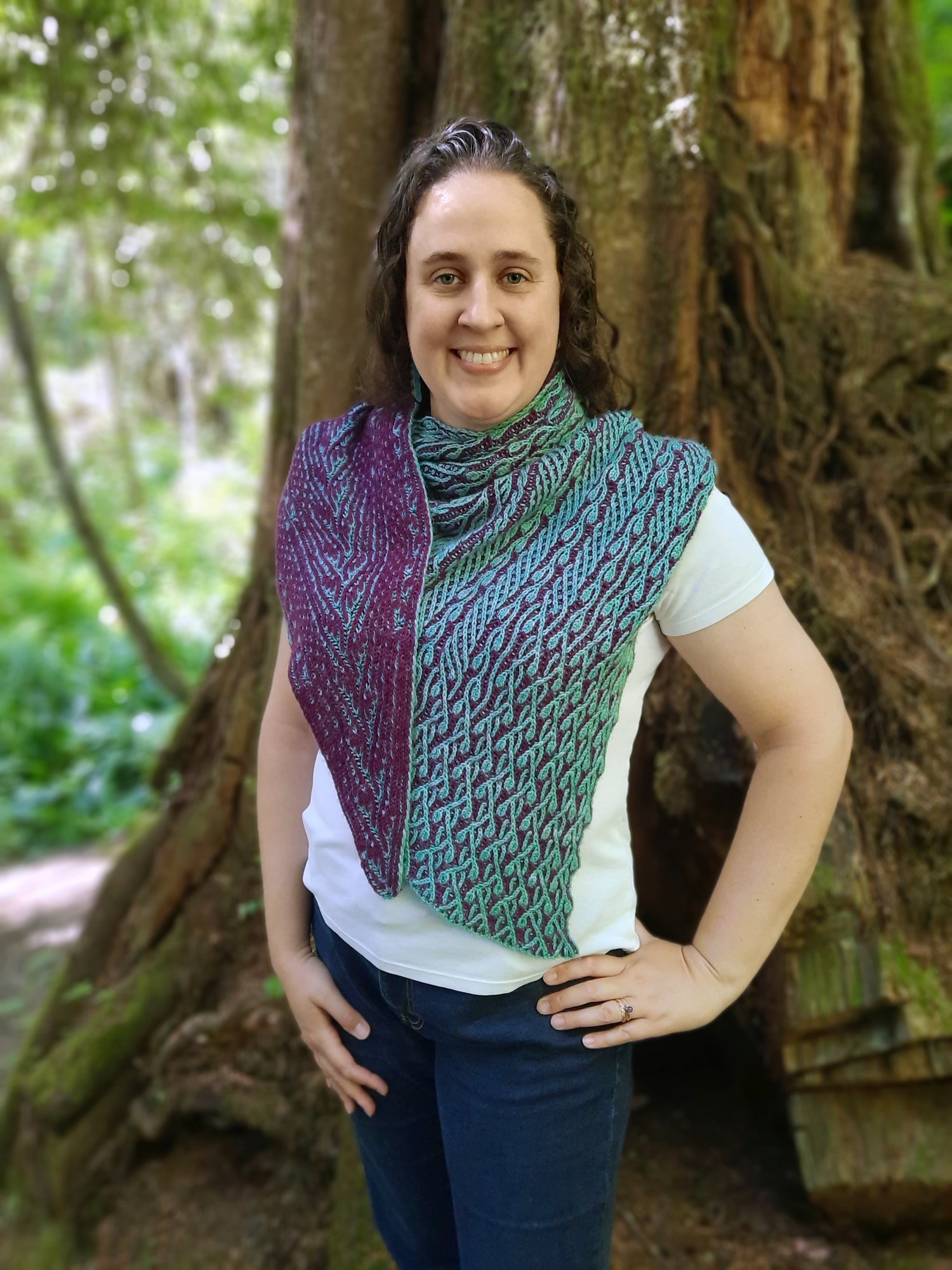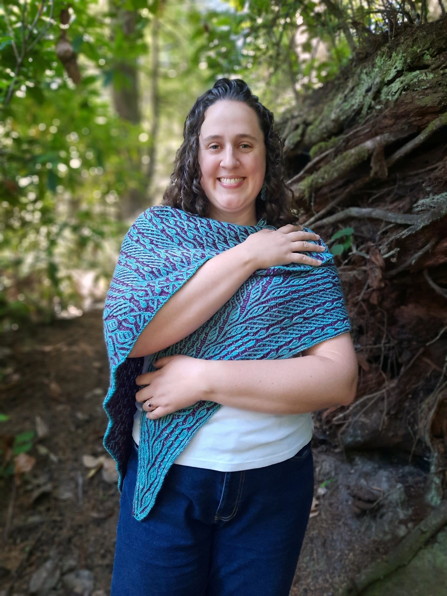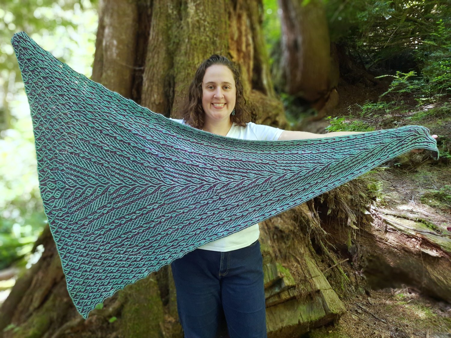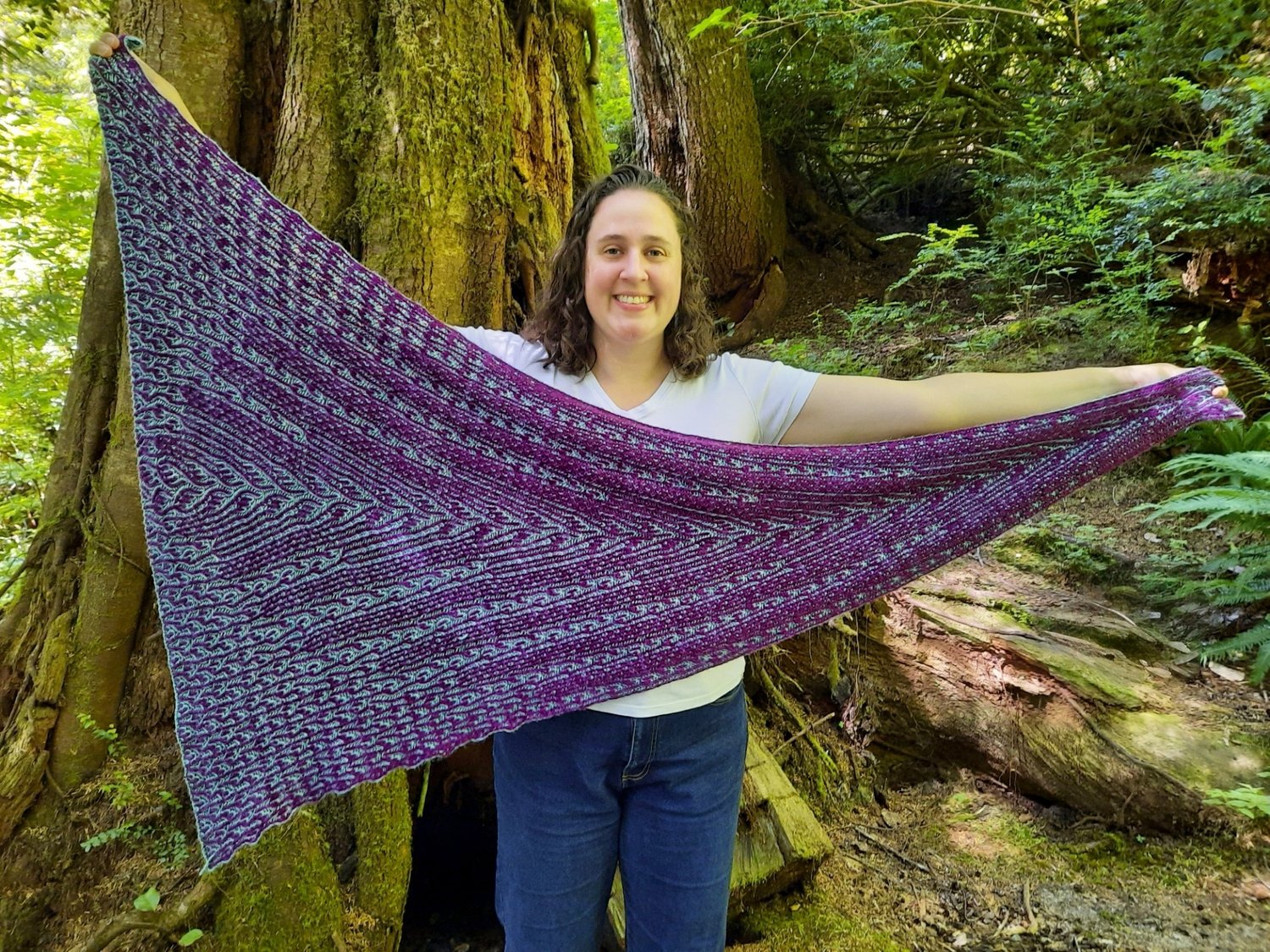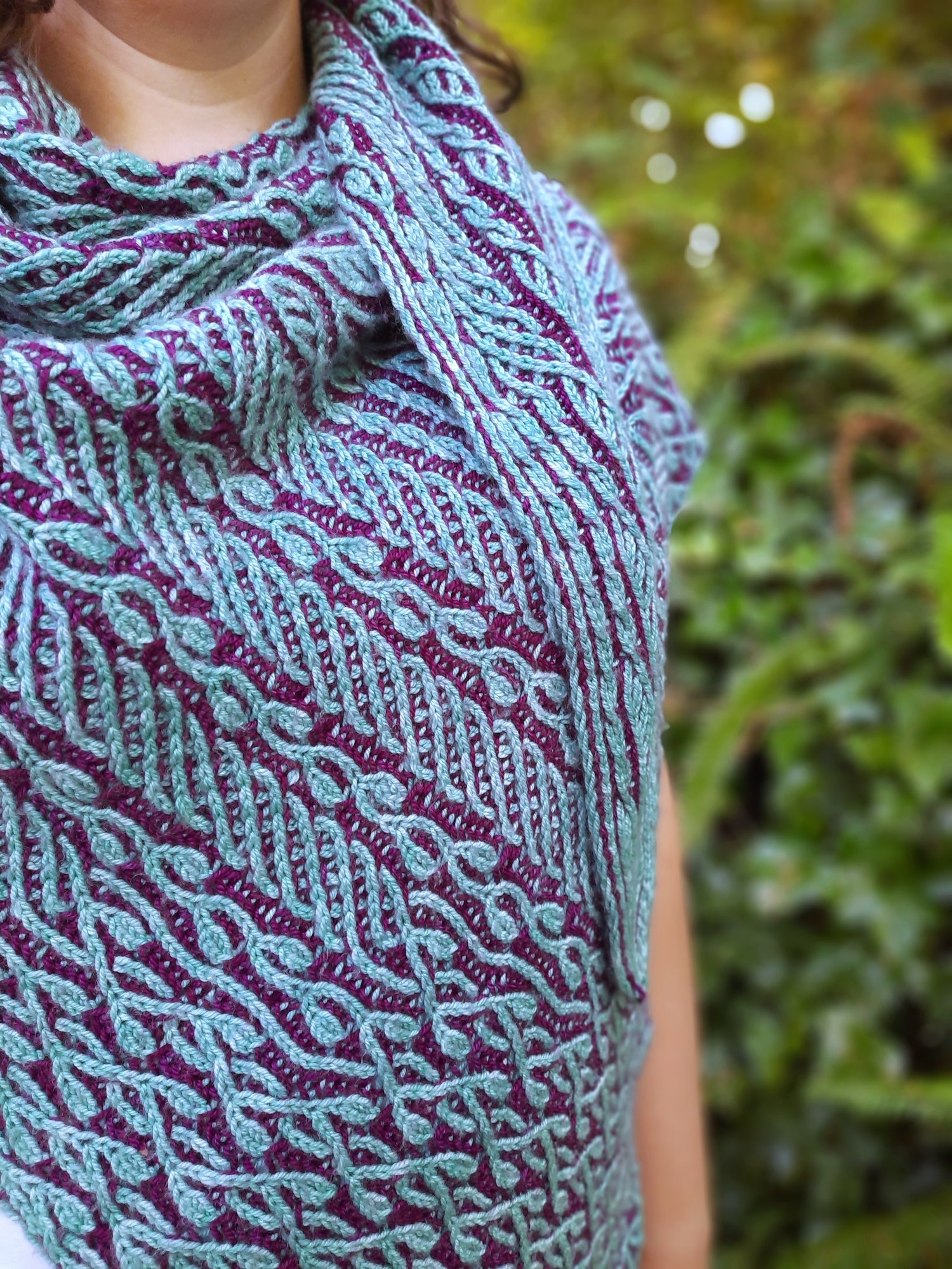 The Synaptic Shawl is an intricate statement piece that will shine a spotlight on your knitting skills. This design combines brioche increase/decrease patterns with brioche cables to create a totally unique design. The stitch patterns develop and transition organically, with the central motif forming the increasing shaping of the shawl, and the designs evolving as they move outward. The ample size allows you to easily cocoon yourself in your creativity, without fear that your shawl will fall from your shoulders, allowing you to be your brightest, most confident self.