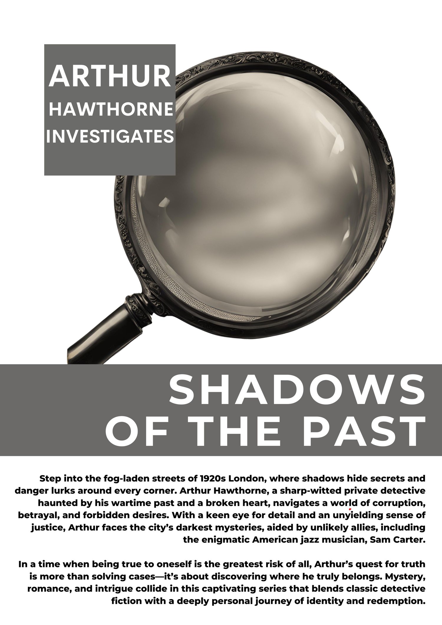 Step into the fog-laden streets of 1920s London, where shadows hide secrets and danger lurks around every corner. Arthur Hawthorne, a sharp-witted private detective haunted by his wartime past and a broken heart, navigates a world of corruption, betrayal, and forbidden desires. With a keen eye for detail and an unyielding sense of justice, Arthur faces the city’s darkest mysteries, aided by unlikely allies, including the enigmatic American jazz musician, Sam Carter.