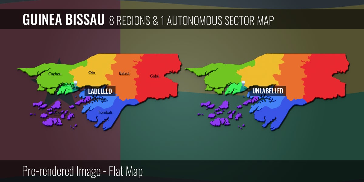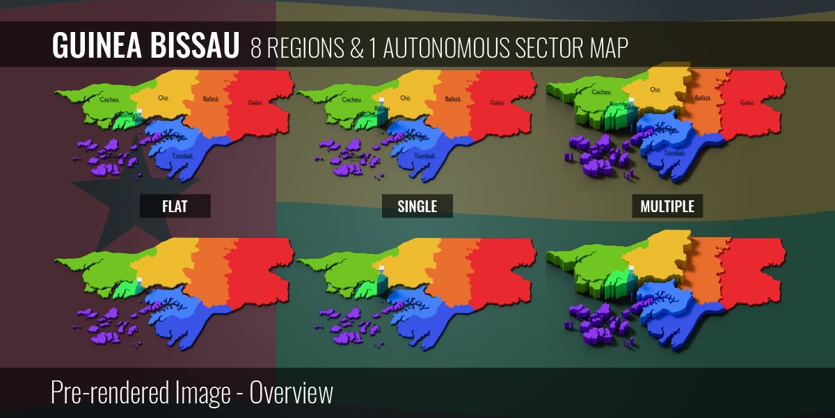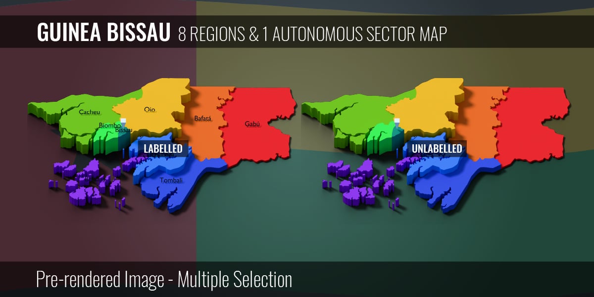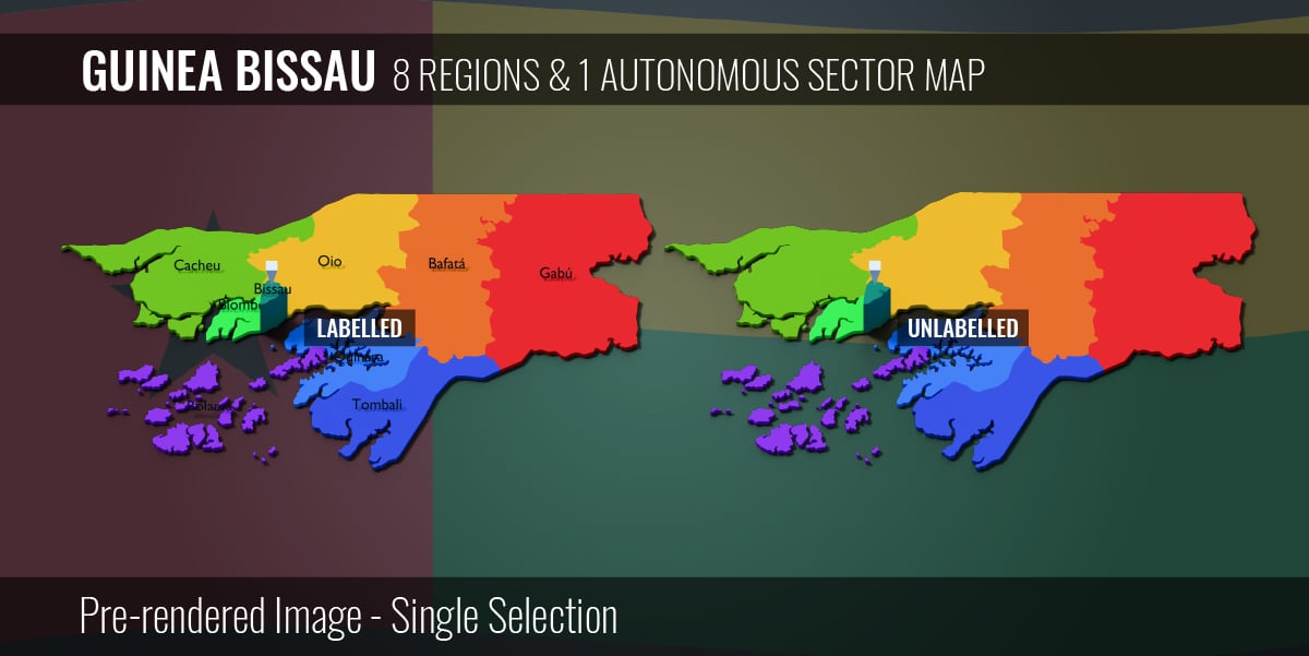 Guinea Bissau - 8 Regions & 1 Autonomous Sector Map (3D + Pre-rendered Images)