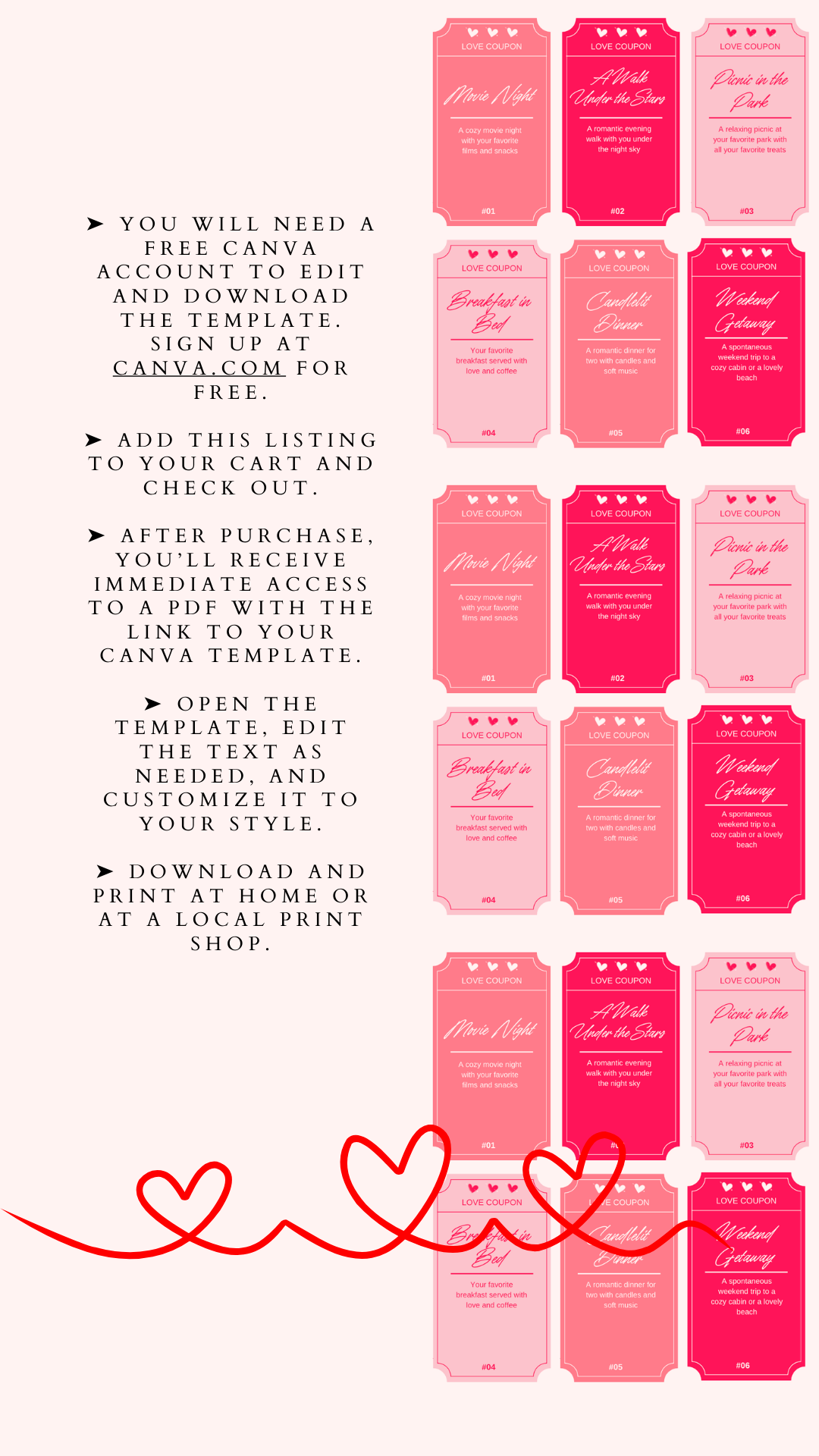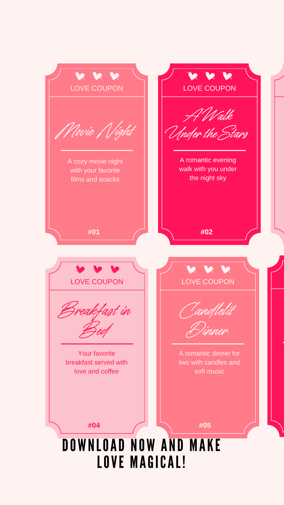 Surprise your partner with 50 editable Valentine’s Day love coupons! These printable coupons are a fun and romantic way to celebrate love, whether for Valentine’s Day, anniversaries, or just because.