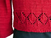 This pattern was named through one of the naming contests I occasionally run. The sweater's color and leaf border reminded the knitter of her childhood, and waiting for the chokecherries to ripen. Brilliant red in summer, chokecherries darken to nearly black by harvest time, when their sweetness is at its peak. The lacy leaves and red color of this sweater evoke blissful days of summer, wiling away the time, waiting for the fruit to ripen to perfection before making autumn’s jams and syrups.