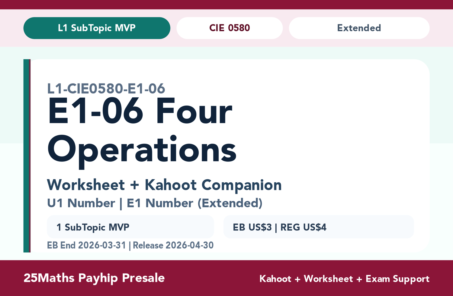 CIE 0580 E1-06 Four Operations (Pre-Sale)