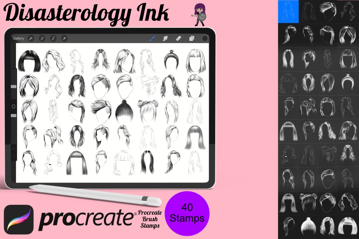 Pack of Women's Hair Procreate Stamp Brushes! These hair stamps are perfect for making illustration projects or any procreate purpose. You can use these in any colour or opacity and they can be resized to best fit your art. You need Procreate 5.0.8 or 5X, an iPad, and an Apple Pencil. Also, these stamp brushes are not pressure sensitive and can be used with third party stylus, Apple Pencil or even your finger. You can change the colour, size and opacity of these stamps.