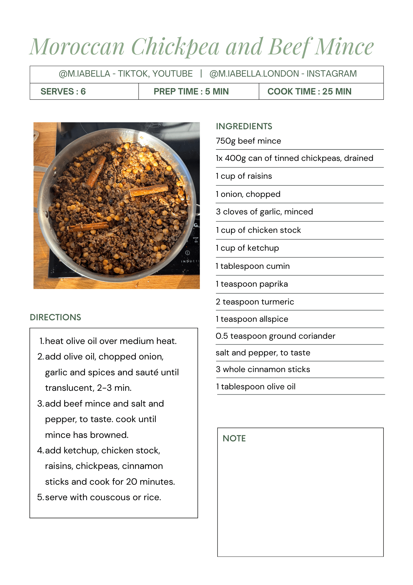 🥘 Moroccan Mince Printable Recipe Card