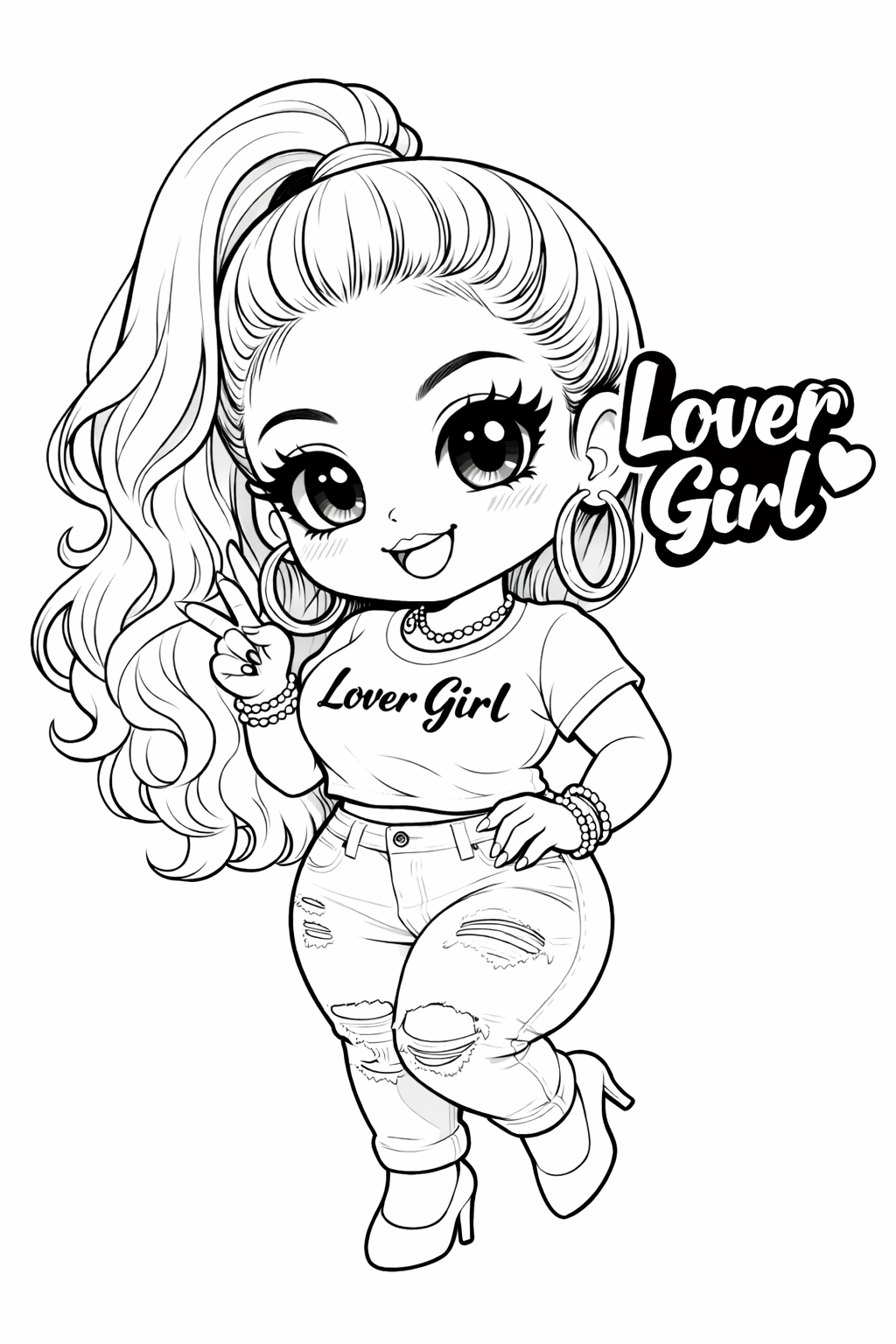A cute Valentine-themed mini coloring set featuring a Lover Girl chibi and heart lips design. Perfect for digital coloring or printing at home.