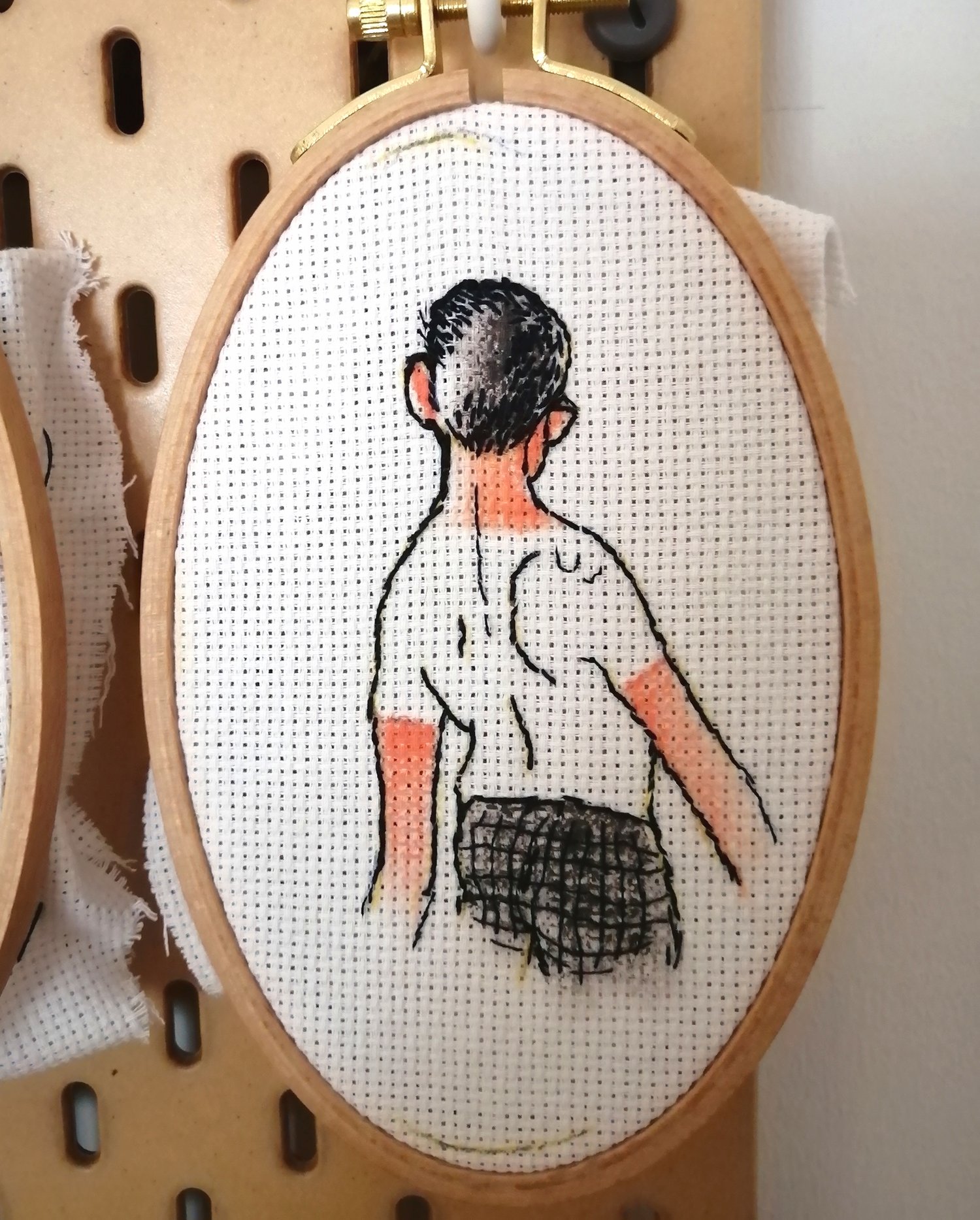 Conjunto de dos bordados sobre tela de algodón en bastidor de 10,5 x 16,5cm.