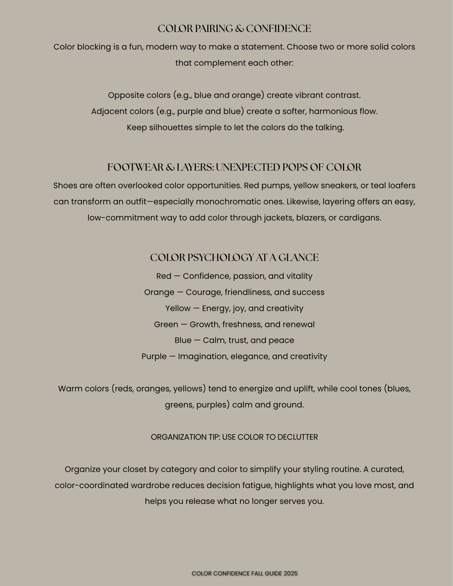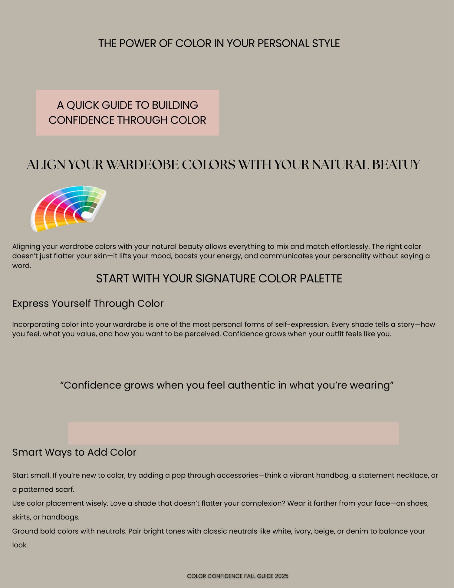 A beautifully designed guide to help you incorporate color into your wardrobe with ease—whether you prefer bold statements or soft, neutral palettes.